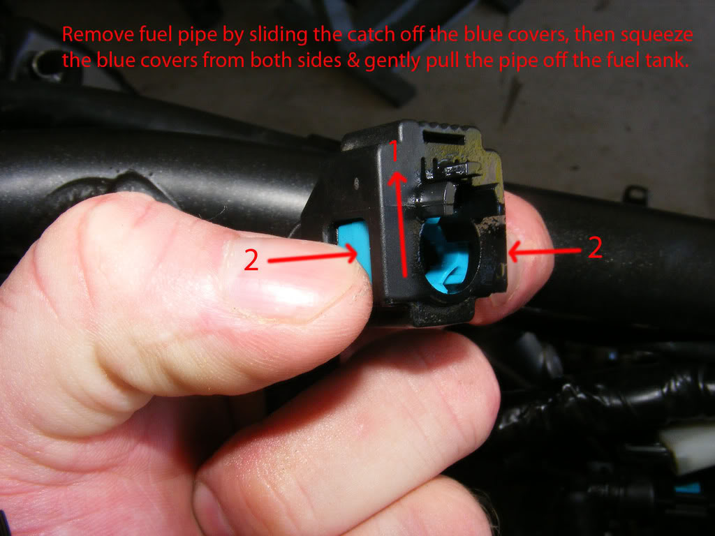 potřeboval jsem sundat nádrž a nešla mě vysunout rychlospojka s hadičkou od čerpadla na nádrži. Na tý spojce jsem odsunul (odjistil) zarážku, ale stejně mě ta spojka nešla svléknout z toho hrdla na čerpadle. Není v tom ještě nějaký jiný fígl ?