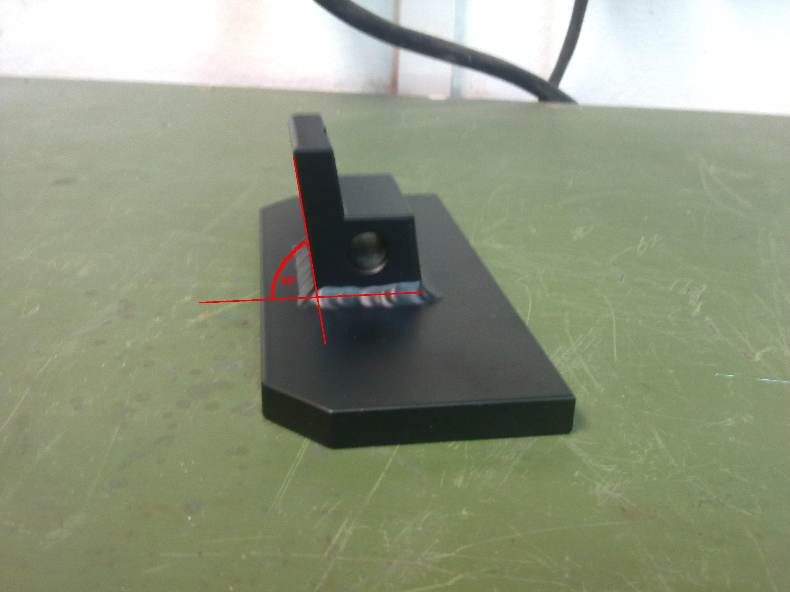 Material dural, povrchovka komaxit, vaha kusu 402g (ze zeleza je to 1,5 kg!to jsem zkousel pri vyvoji jako pokus nanecisto). Samozrejme kostka se vyrobi zvlast a plotna taky a pak se to svari k sobe, ALE POZOR! tady je trochu problem. Vlivem tepla pri svareni se plotna prohne (kraje jsou vys o 1 mm proti stredu) a na takhle prohle plotne se moto houpe, tedy po svareni je treba plotnu prefrezovat - zarovnat! Doporucuju dodrzet uhel 82°, ten zajisti to, ze po zvednuti ma moto predni kolo na zemi a zaroven plotnicka lezi celou plochou na naslapnem stojanu.