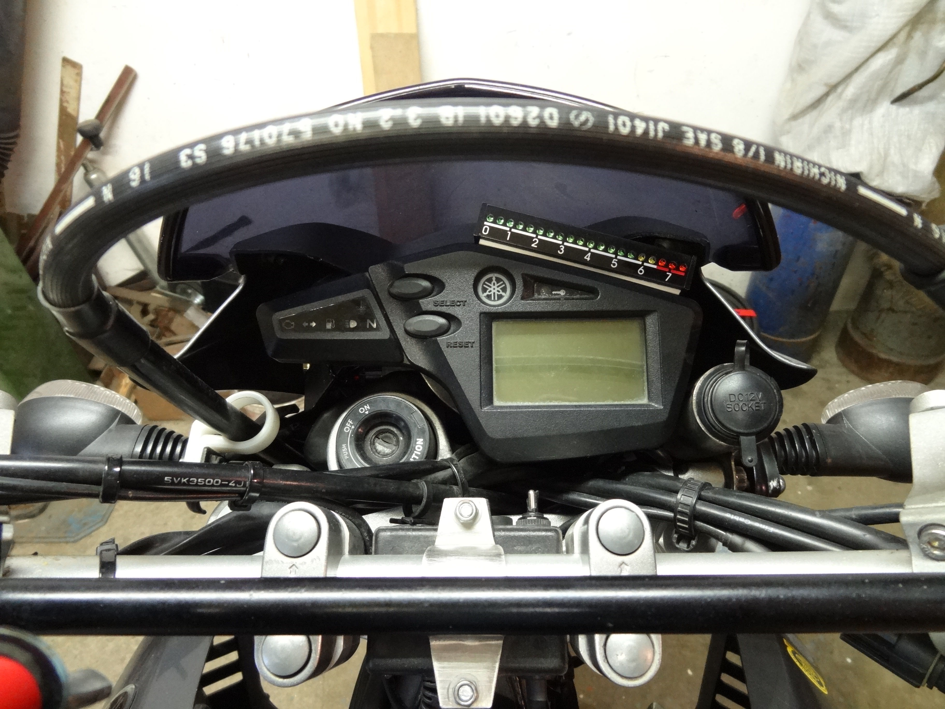 Finální verze bude: V horním řádku vpravo aktuálně zařazená rychlost (vydělím rychlost otáčkami motoru a podle poměru zobrazím rychlost), dole bude analogový otáčkoměr tak jak ve videu. Pokud bude rychlost nulová, bude se v horním řádku místo zařazené rychlosti zobrazovat venkovní teplota a napětí akumulátoru.