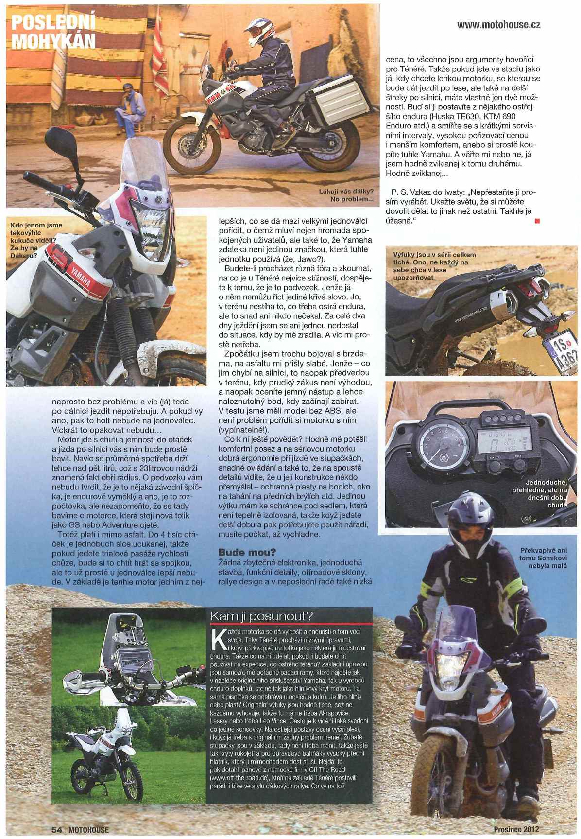 V posledním čísle časopisu Motohouse (12/2012), které vyšlo včera, je test XT660Z Tenere