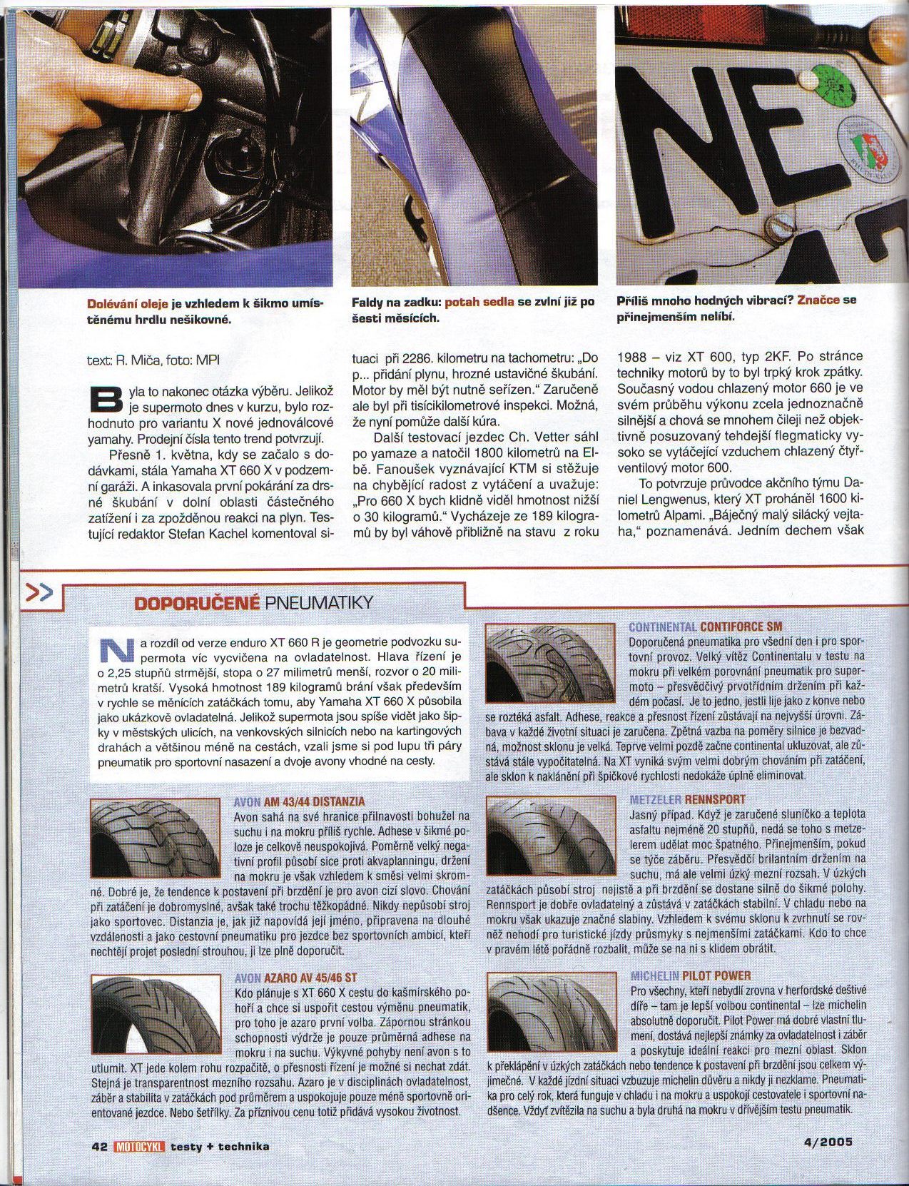 Tak nevím, jestli už to tu náhodou není, ale dnes dělám pořádky se starými krámy a našel jsem časopis Motocykl a v něm recenze XTčka z roku 2005. Tož pár fotek a nějaké čtení ...