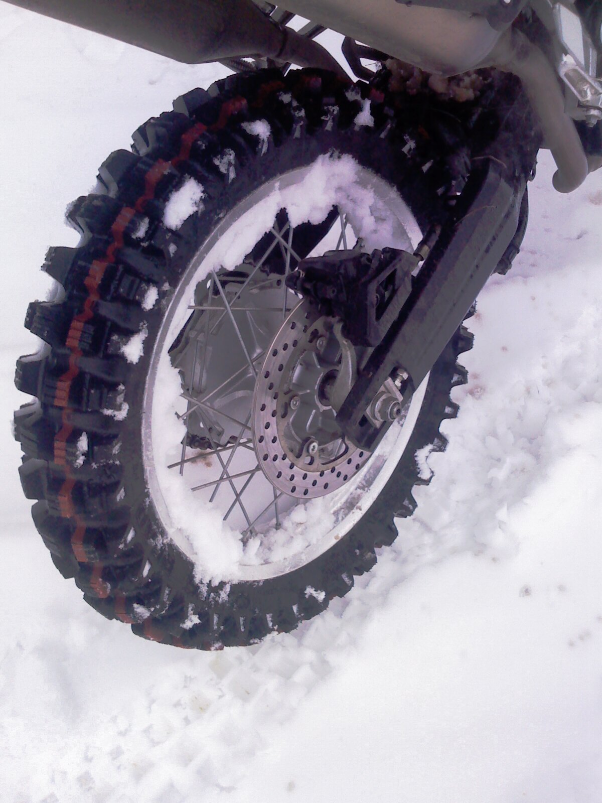 .. Jinak nemám na sněhu moc zkušeností, ale přijde mi, že jak je ten sníh mokrej a těžkej, mnohem líp se v tom jezdí a motorka mnohem lépe drží stopu, než když je napadaný čerstvý prašan..