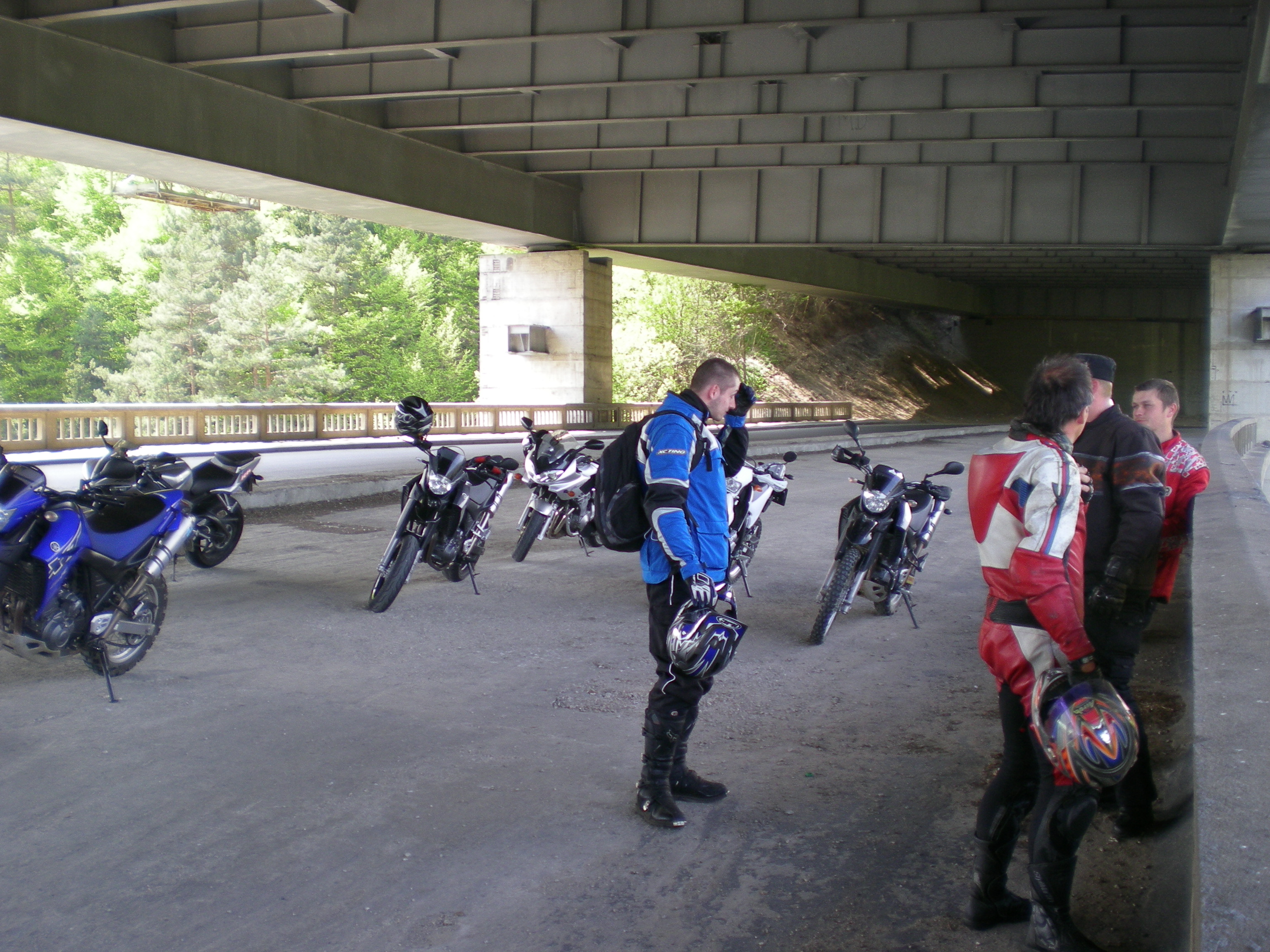 Hola, tak jsme se nakonec sešli v šesti lidech-R6, Bandit, dvě XT-R, 1 krásné nové bílé Danino WR250R a 1 X-ko. Sraz v Benešově, dojezd a oběd v Pacově, pak projížďka Vysočinou se zastávkou na dvojitém dálničním mostě (spodní most z dob Hitlera a přímo nad ním pár metrů nový na trase Praha-Brno), Humpolec, Pelhřimov, Kámen a na trať Propad do Pacova, kde už burácely čtyřtakty. Byl to mazec, jela se republika a člověku zůstává rozum stát, co ty chlapi dělaj...