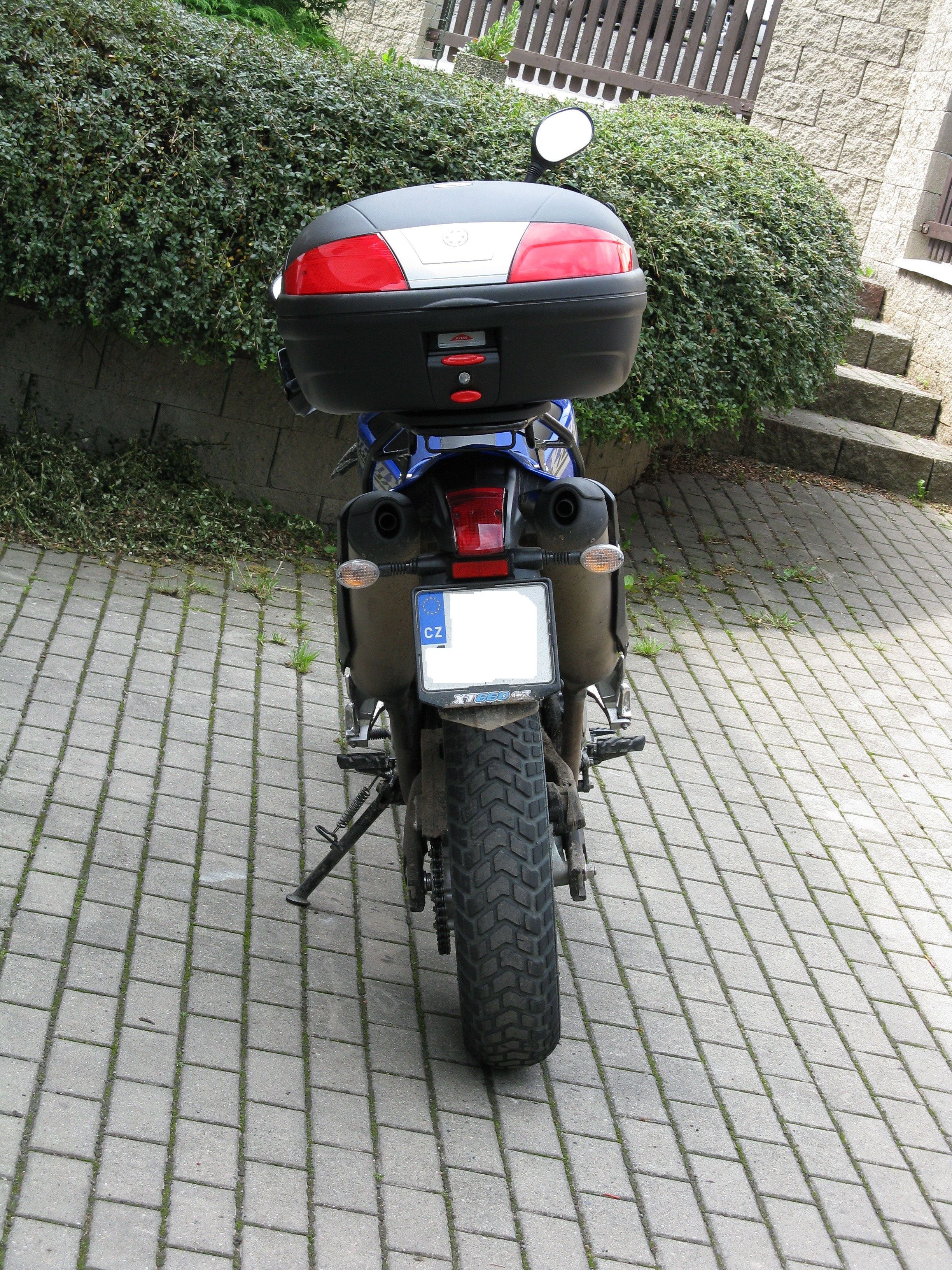 Dneska jsem se jel mrknout do jednoho motoshopu na nějaký kufříky na XT. Moc jich tam neměli, buď ty malinký na 1 helmu a nebo hodně veliký 46litrový. Za ten velkej si účtovali necelý 4000Kč, protočil jsem panenky a zeptal se, jestli si ho můžu zkusit dát na mašinu. Jenom pro zajímavost. Žádný problém.