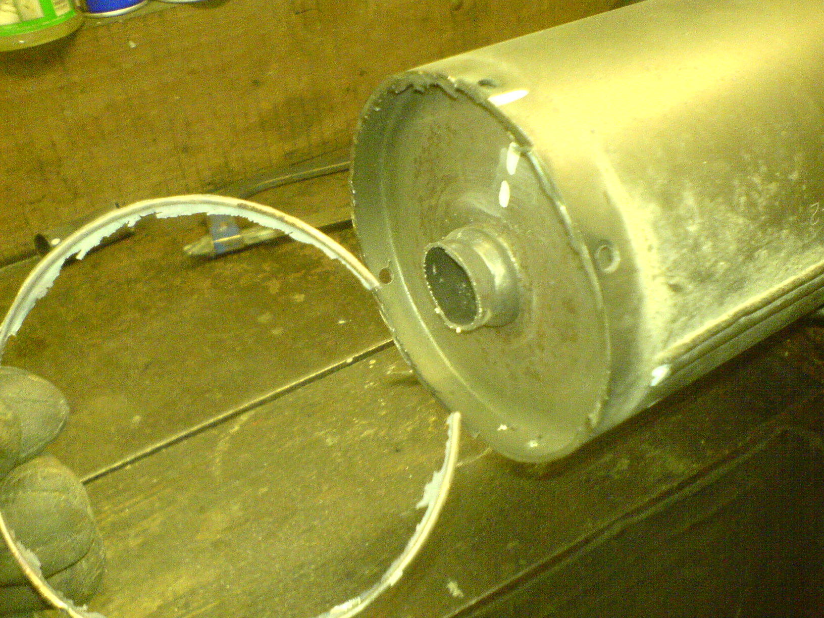 Nevím jestli se mi podaří misku s přepážkami vyjmout, anebo budu muset celé říznout i v místě katalyzátoru a vymlátit přepážky z té druhé strany (ve směru toku výf. plynů).