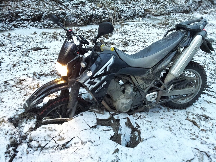 Tak minulý víkend jsem byl pojezdit s rumasem (KTM) a vyzkoušel jsem si co spíš já než XT zvládnu zima jako prase a když jsme projížděli roklinou zmizelo mi přední kolo v bahně pod ledem, zastavil sem se až o řidítka :mrgreen: