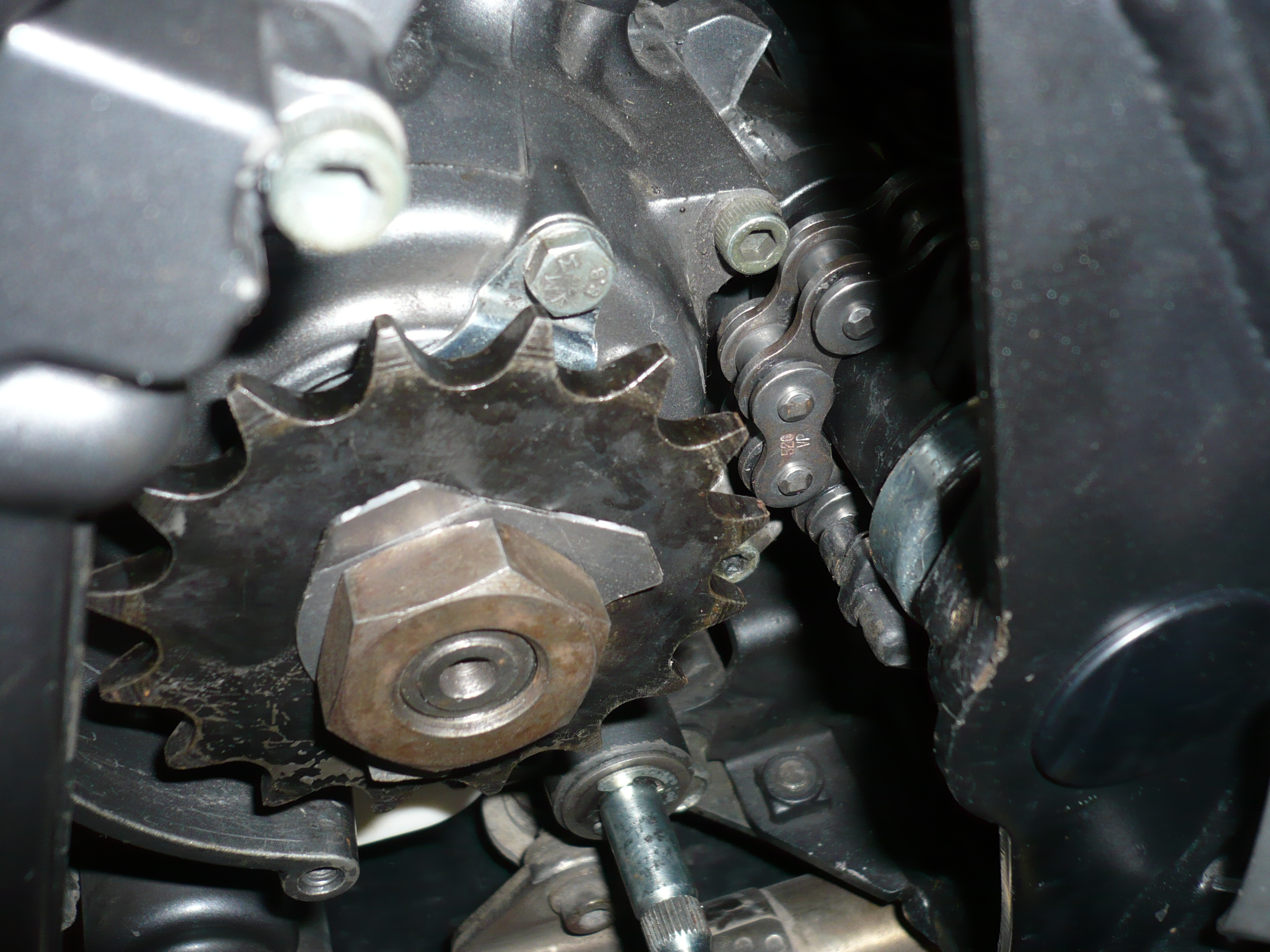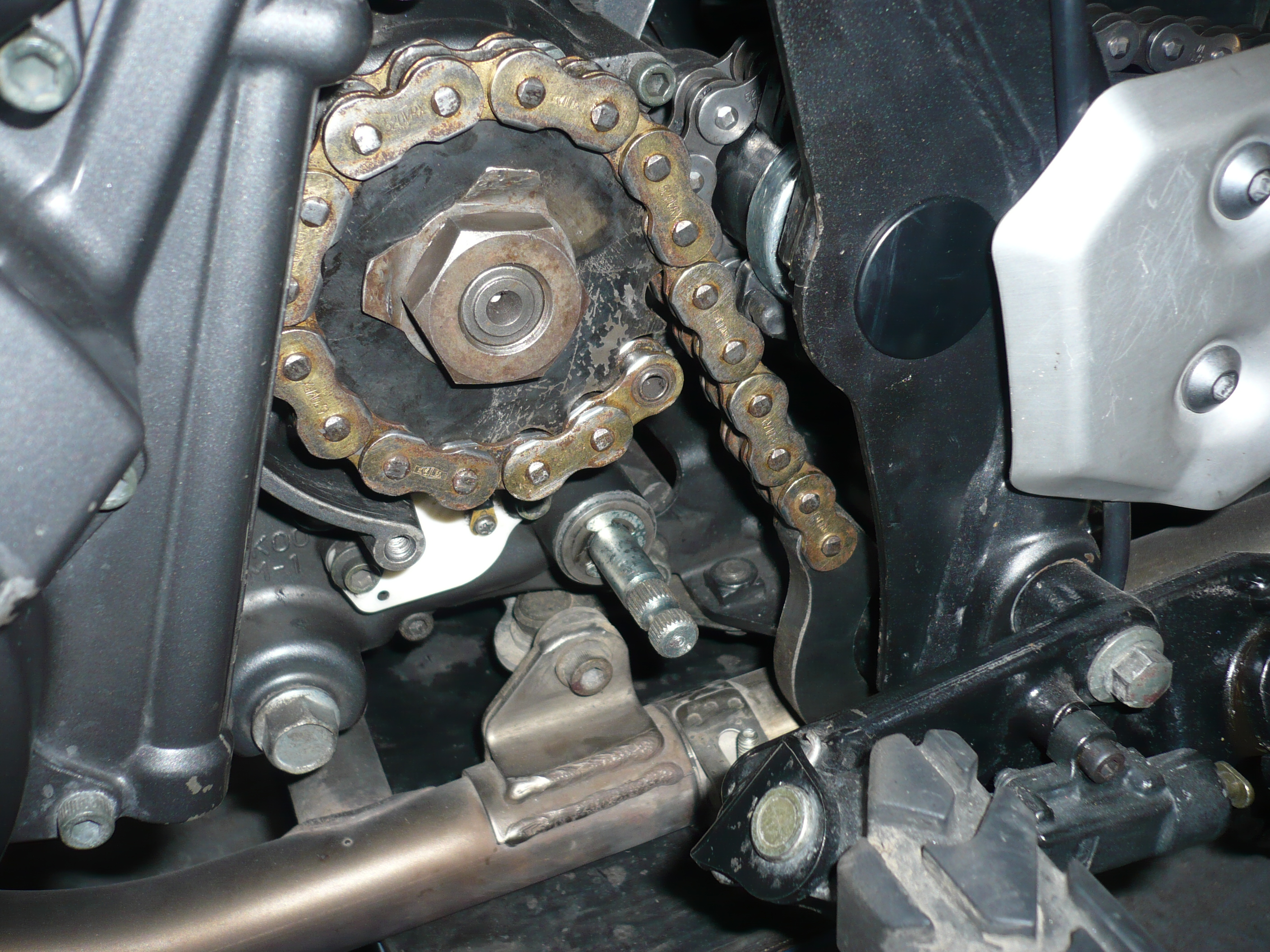 nejdřív je třeba povolit zadní kolo ,povolit šponováky aby šlo shodit řetěz z rozety i z kolečka a vtěsnat ho mezi kyvku a motor ,zkoušel jsem i sundat řetěz ze 16z kolečka , sice to je na těsno ale jde to.