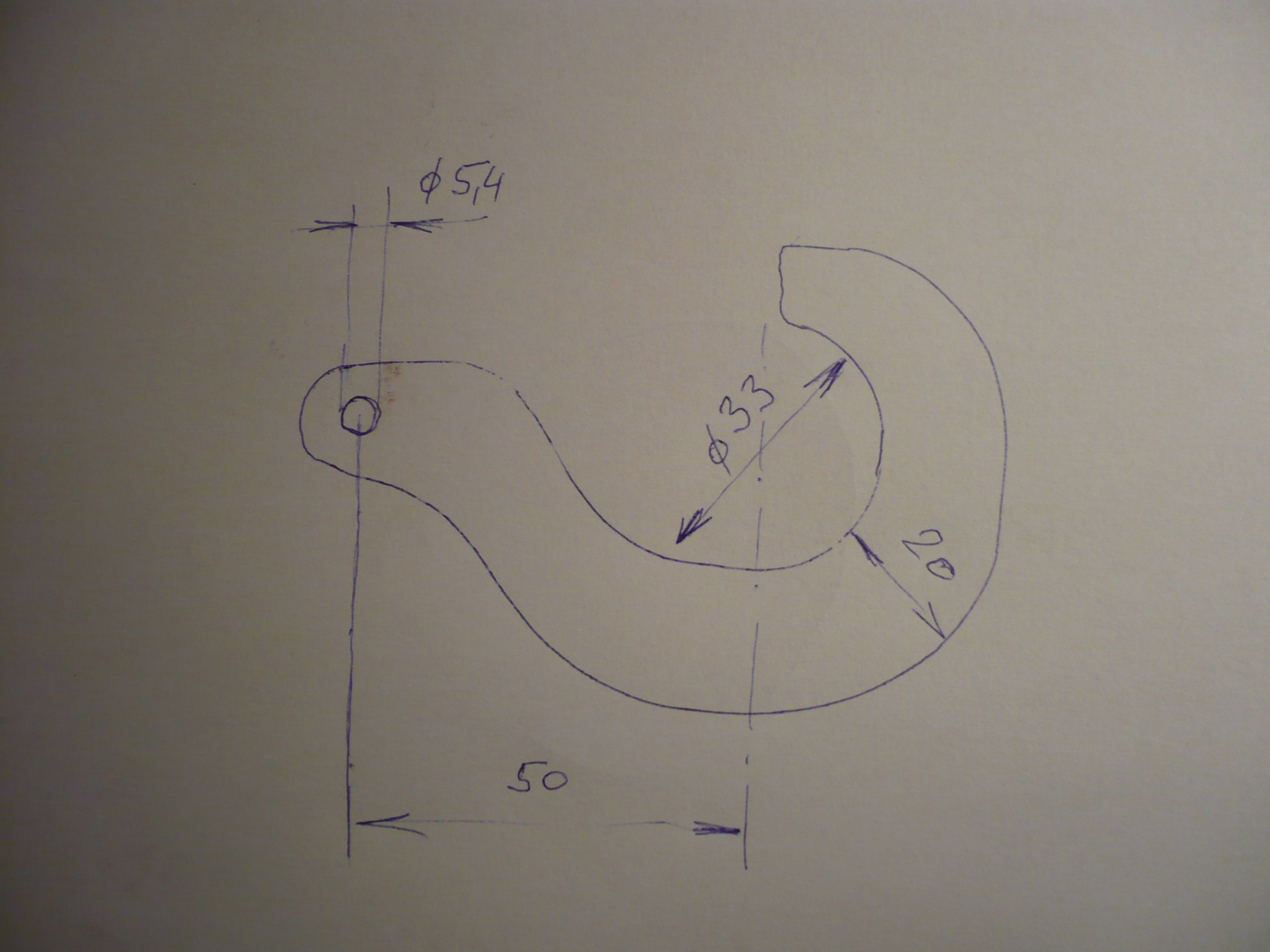 venca > no já žáden nákres nemám ,změřil jsem si akorát průměr té trubky o kterou to je zaháklé plus 1mm a průměr čepu řetězu no a pak jsem už jenom frézoval s přimhouřeným okem aby to vypadalo jako hák ,myslím že ten co bude dělat program si s tím dá radu.jestli by to bylo možné mohl bys nejdřív zkalkulovat cenu ,to se pak lidi lépe rozhodujou.Jestli ti to pomůže jen takový nákres