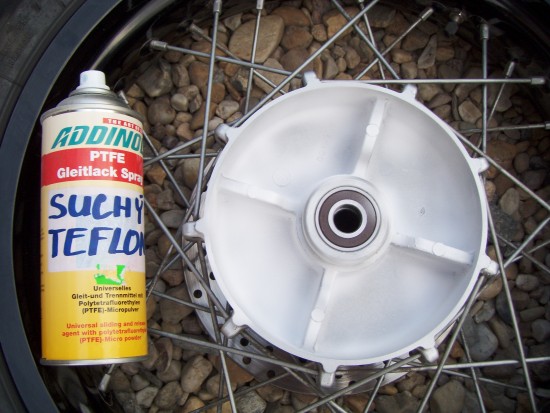 Všechno jsem vyčistil benzínem, jiný odmašťovadla byly úplně k ničemu v tomhle případě. Inspirován panem Totrem jsem před demontáží koupil suchej teflon ve spreji, silikon teflonové mazivo bohužel nikde neměli a všichni prodavači si mysleli, že si vymejšlím nesmysly když po nich chci něco takovýho. Všechno jsem vyčistil, celej vnitřek nastříkal tim teflonovym sprejem až to zbělalo a stejnej úkon učinil i na těch novejch gumách.