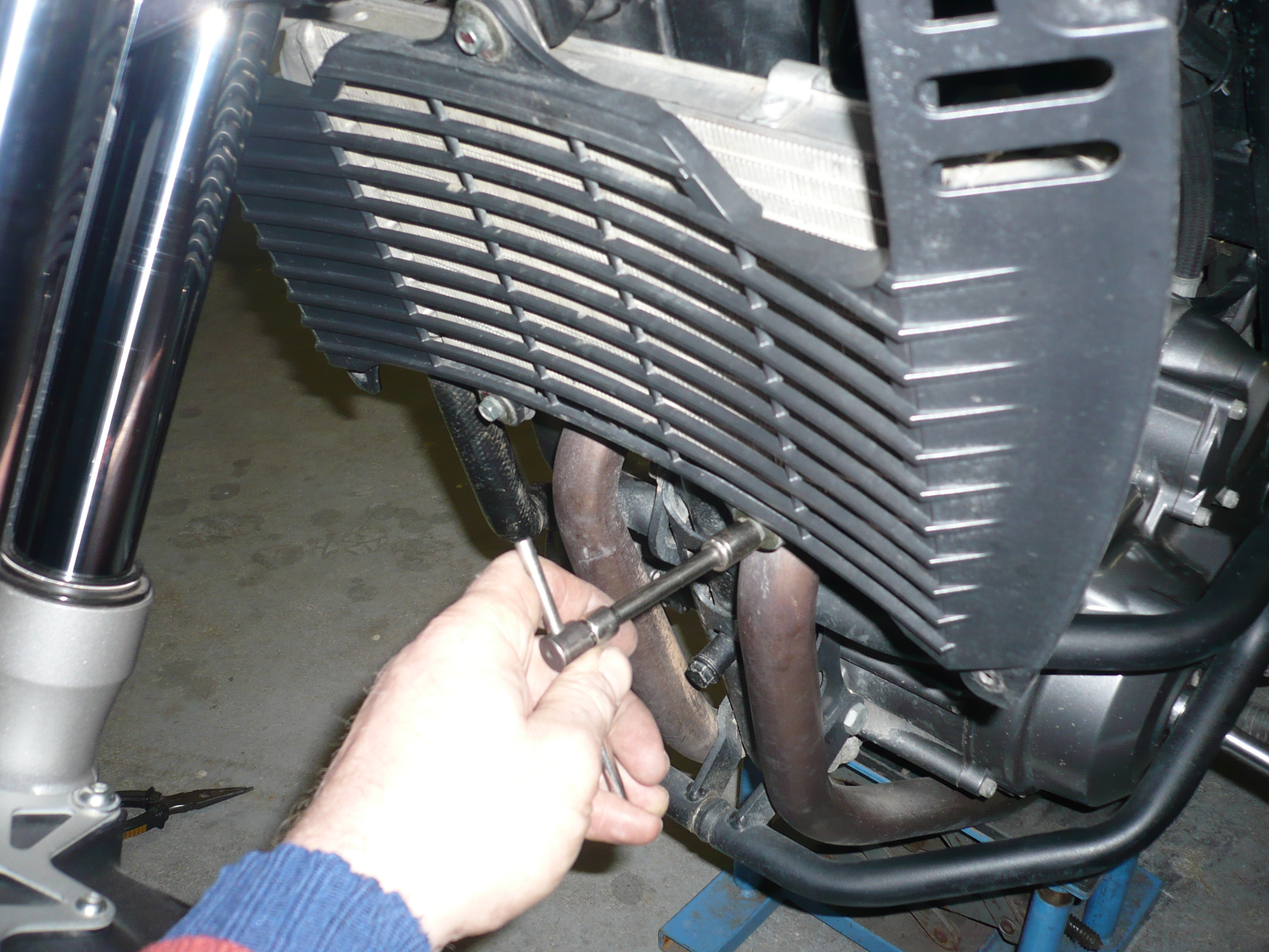 U výfukových ventilů postupujeme stejně ,ale tolerance je 0,16-0,20 mm.(výfukové ventily jsou ve předu motoru)Tam je dobré odmontovat z chladiče ventilátor,3 šroubyTORX 25odšroubovat chladič 3 šrouby aby ho bylo možné dát níže pro lepší přístup k ventilůmnesundávat hadice ani nevypouštět kapalinu,není to potřeba.Ještě tam překáží hadice která jde do airboxu,tu je třeba taky sundat a vyjmout(jednu stranu)je uchycena jen pružnou sponouPOKR....