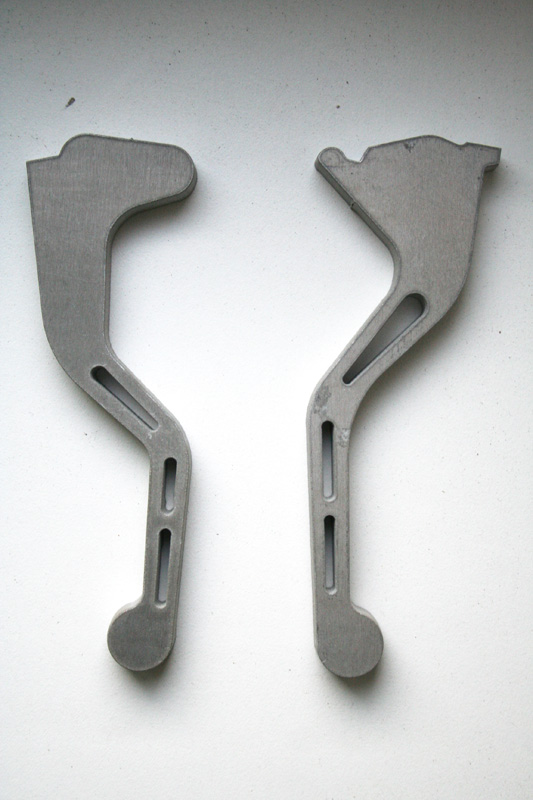 Nakonec jsem po konzultaci s jedním frézařem upustil od snahy dostat páčky na motorku. Říkal mi, že by to asi zvládl levněji, ale že osobně by měl strach z toho odlehčení v místě nějvětšího namáhání páčky. Prý taková prasklá páčka při prudkém brzdění ....... ale tím nechci nijak hanit Melounkovu práci. Jen jak jsem nakoupil tak prodávám.