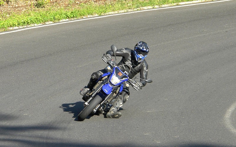 Docela by mě zajímalo kolik lidí naklaní xt až na stupačku? Když jsem měl pneu e-07 tak jsem se na stupačku nedostal ale s e-08 to jde každou zatáčku. Mám stupačky od Venci a už je mám pěkně ohoblované.