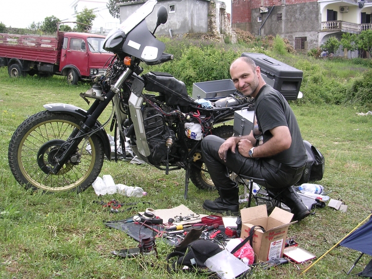 ...trochu nám vyhořela elektrika 30 km od Albánské hranice, tak to tam opravuju