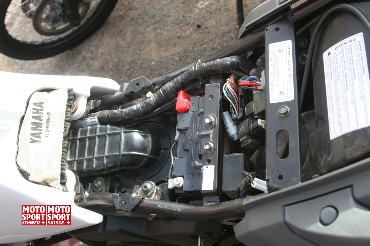 Odstranění šnorchlu. Podle informací z ostatních serverů zabývajících se XT660Z to vypadá, že tahle moto je uškrcená hlavně na sání - výfuk už prý tak restriktivní není. První - nejlevnější - pokus jsem tedy udělal - viz foto. Origo šnorchl jde bez problémů vyndat z plastové objímky a nahradit těsněním.