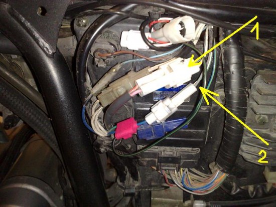 2. senzor pozice klikove hridele, jediny dvoupolovy konektor (sedy drat, ja to teda napojil pomoci spojky ktera je soucasti baleni pred spojku, na modry )