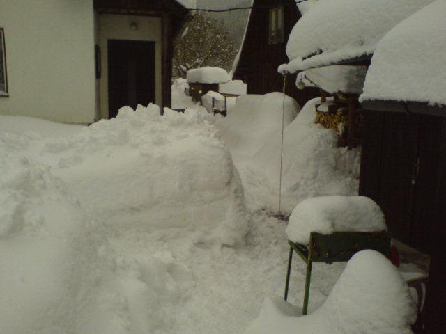 ...ze včerejška na dnešek dalších asi 15 cm, a stále sněží