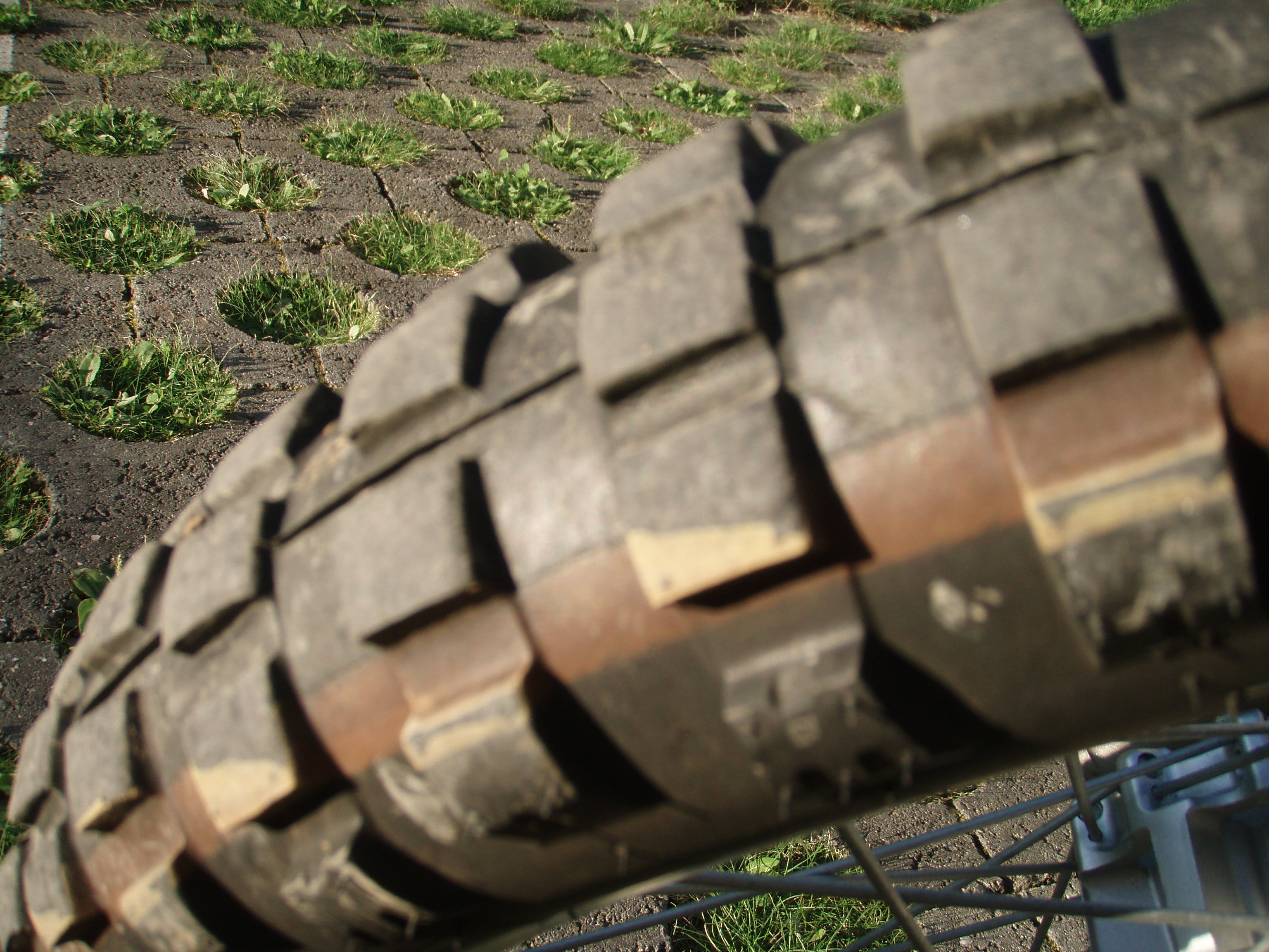 tak takhle vypadaj po 6tis km kdy pres 90% bylo s nalozenou moto. nepovedlo se mi to moc vyfotit. sorac. jinak za tu cestu si u me vyslouzily jen samou chvalu. nemuzu rict krivyho slova. ale nemam je ozkouseny na limitu no...tak uvidime este casem. jinak typek z yamahy mi povidal ze na ne neda dopustit a na svyho bavce neobouva nic jinyho. tede co se tyce zadku. predek mu prej hodne rychle mizel tak tam dava prej ty twindura. to s tim predkem muzu jen potvrdit. mizi fakt rychle. oproti zadku