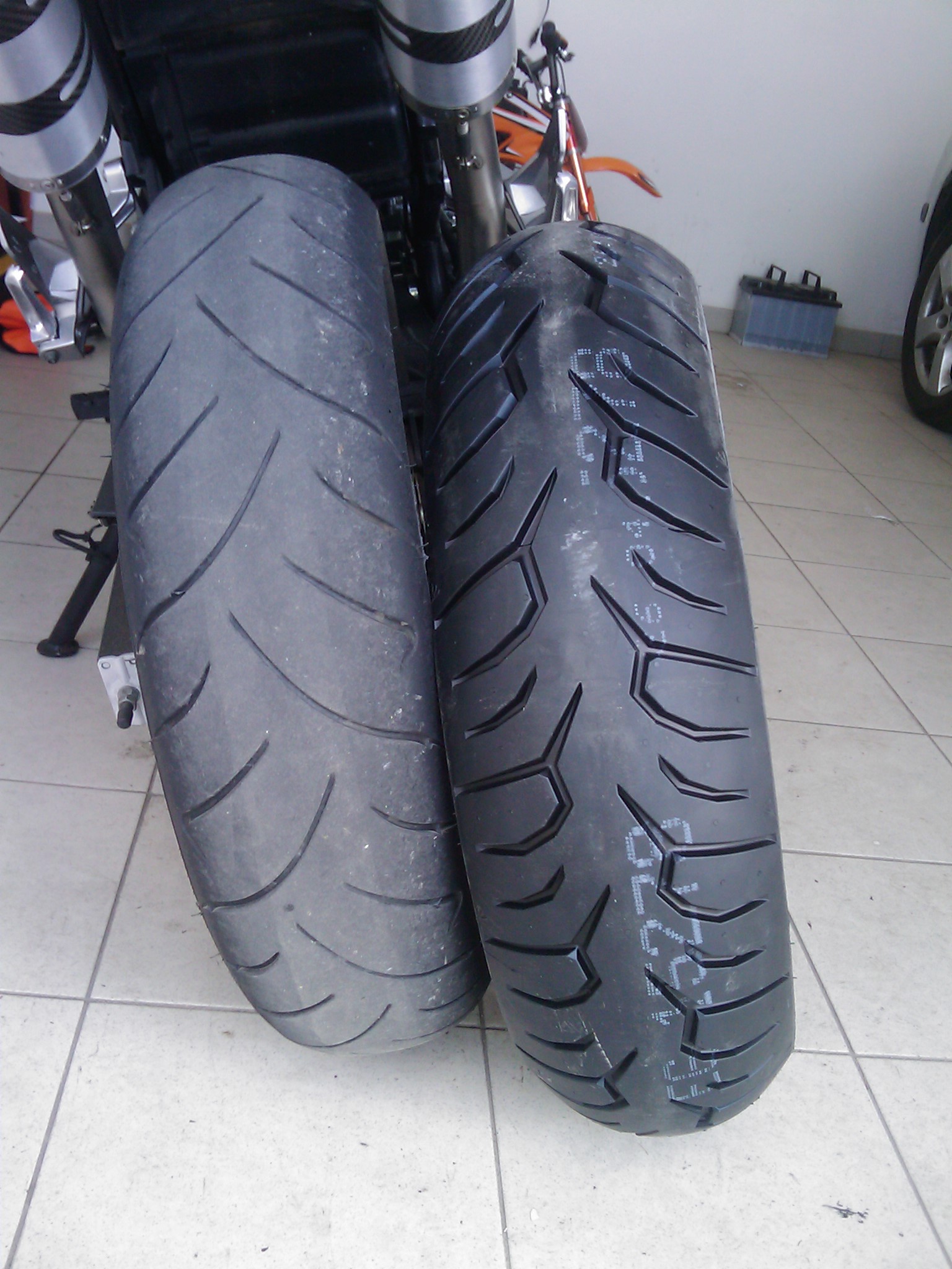 Jinak, dnes dorazila Pirellka, tak dávám k porovnání jen okemVypadá docela agresivně a zdá se mi, že je i na středu vyšší jak ta Dunlopka. Chtěli 3300,-, což je stejný