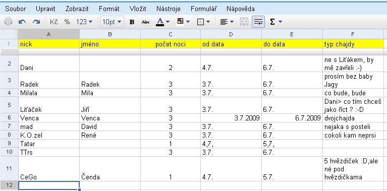 Takže Vás mám celkem 12. Do pátku mám tedy poslední možnost zamluvit chatky, pak už si každý, kdo bude navíc zařizovat sám pro sebe.