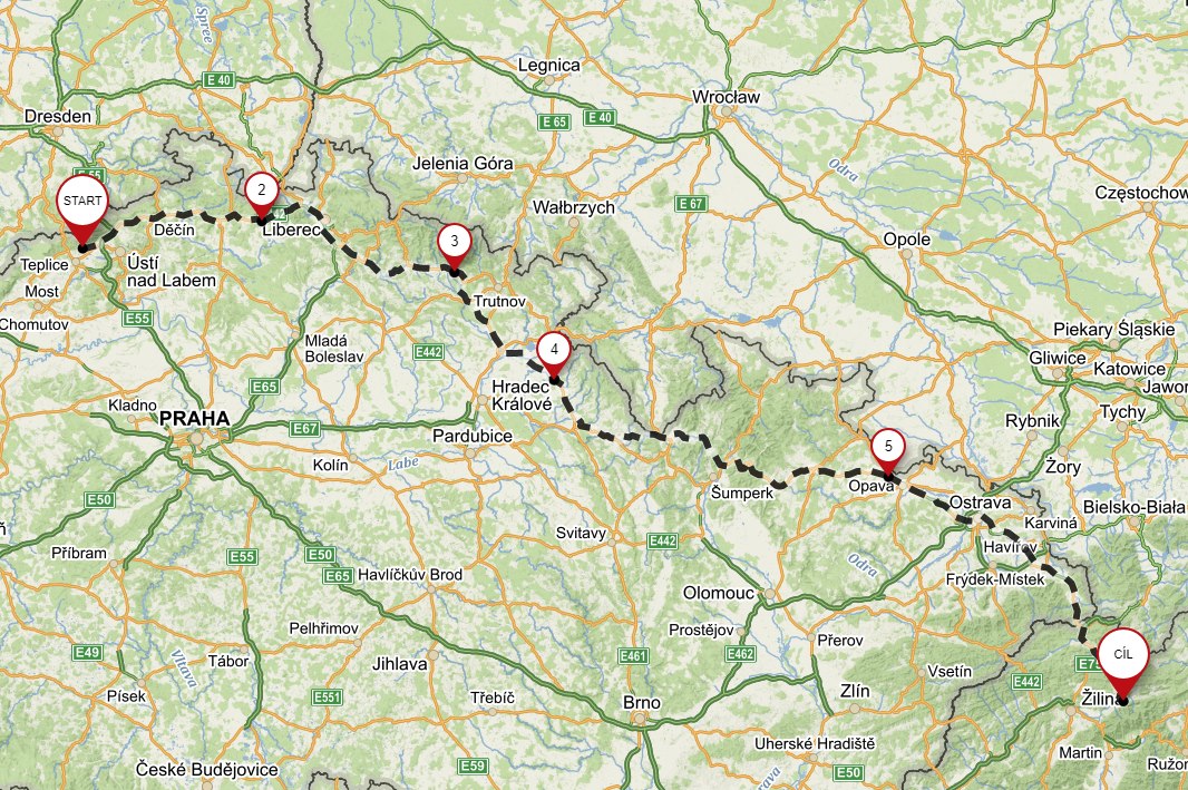 Kdyby se chtěl ke mě někdo přidat, pojedu z Teplic vrchem přes Liberec/Vrchlabí/Žamberk/Šumperk/Opava/Ostrava/Jablunkov.