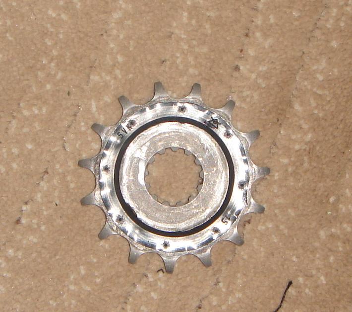 navíc řetěz na tomhle koločku není pakticky slyšet proti tomu jak to bzučelo a vrčelo na tom původním, takže si myslím že po tom běží lepší než po tom vydřeném originále a mohlo by to prodloužit životnost cele řetězové sady, protože na zadním věnci není žádné opotřebení ještě patrné