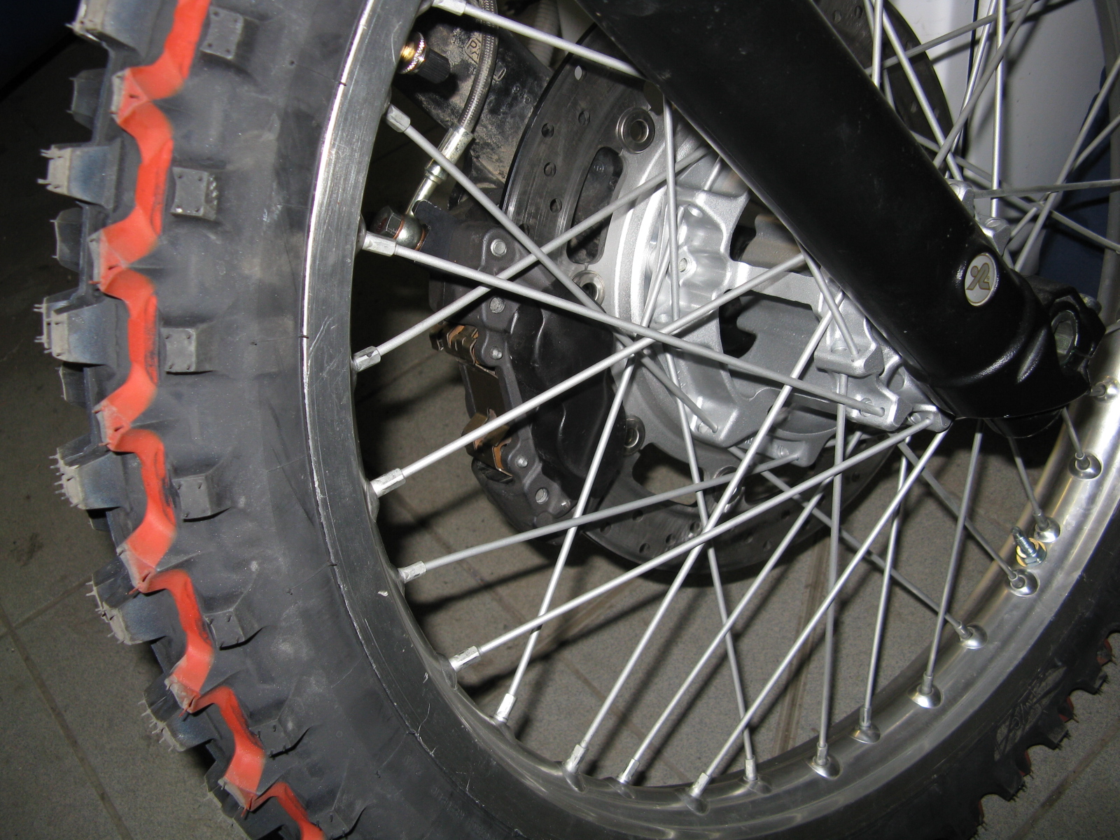 Jinak taky důležitý upozornění pro ty, co by se do něčeho podobného chtěli pustit.. Přední brzdič BREMBO (co je v sérii na Xku) drhne o výplet. Bylo nutné ho na straně směrem ke středu zbrousit o cca 2mm a teď je mezi brzdičem a drátama cca 1,5mm mezera... Nejsem ve "strojařině" žádnej odborník, ale myslím, že výplet se během jízdy jen tak do strany neposune a to malé ztenčení brzdiče snad taky ničemu vadit nebude..