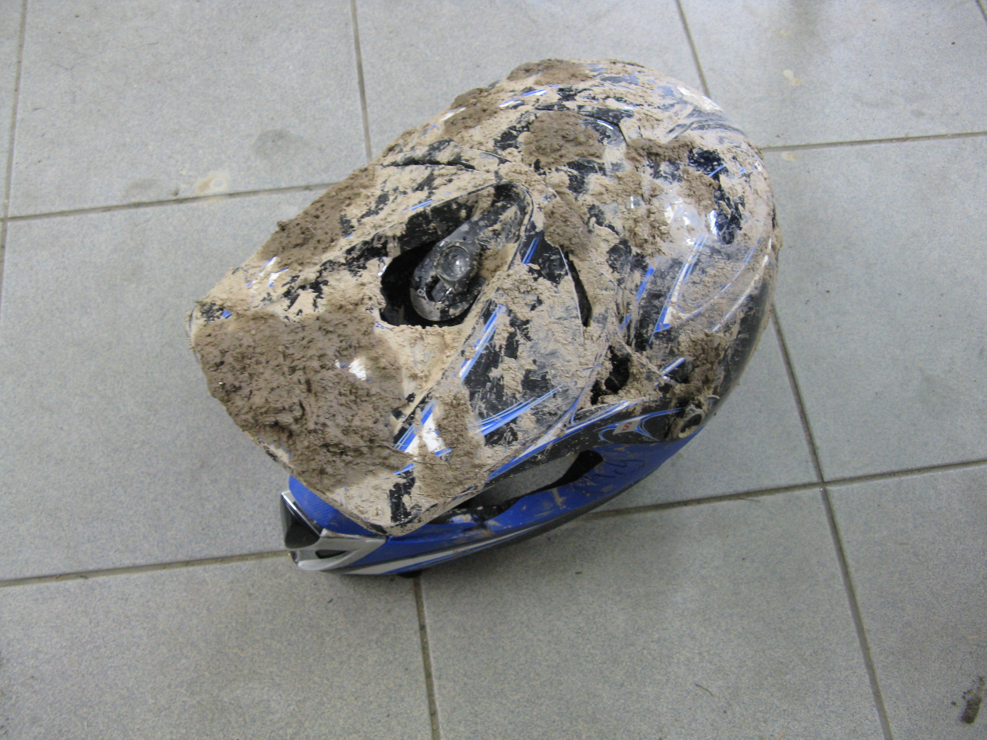 Kolega předemnou zajel do hluboký louže a v zájmu záchrany motorky to pěkně oroštoval - já si stihnul akorát dát ruku před brýle