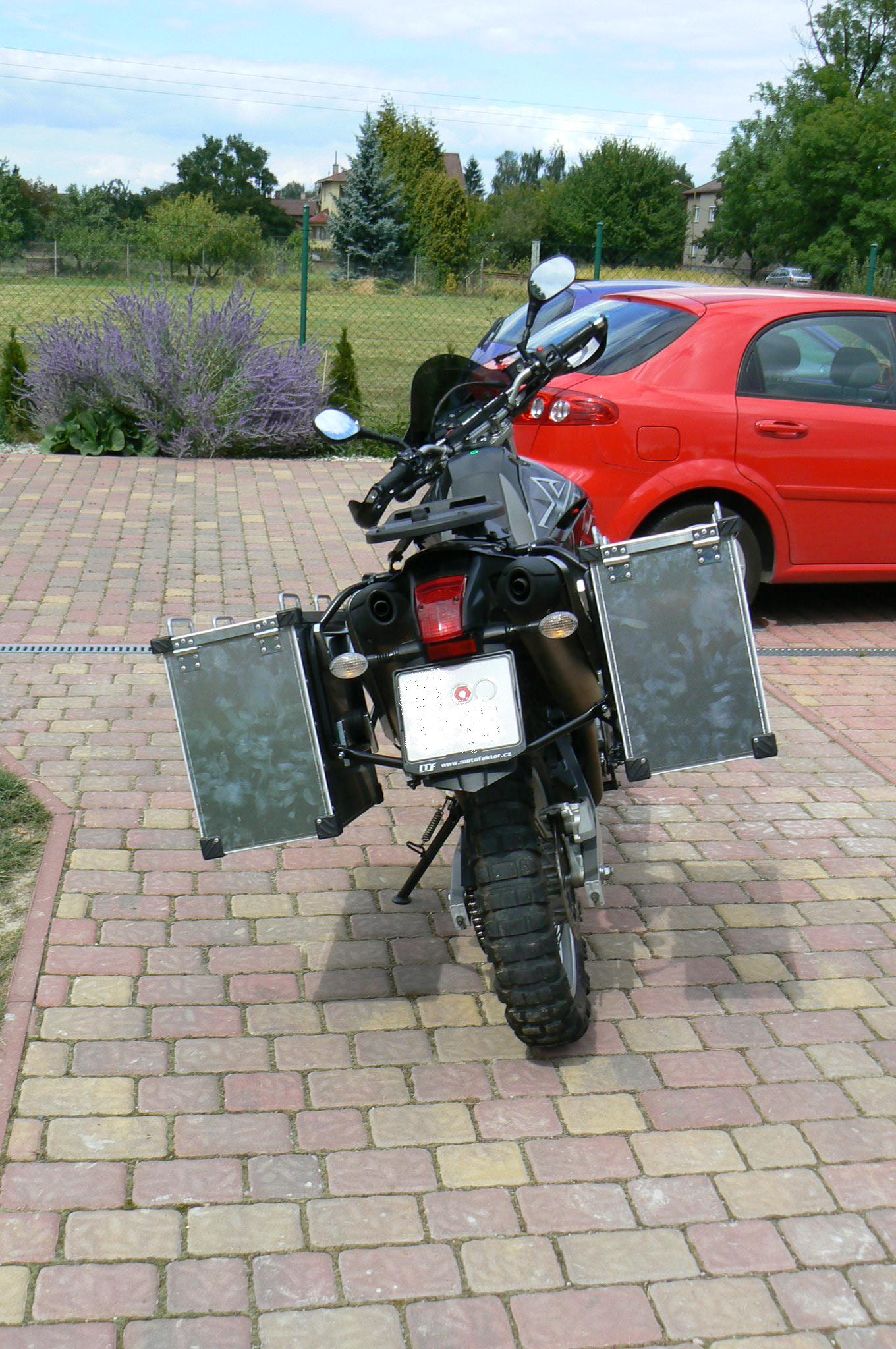 Pokud by někdo chtěl kufry na xt doporučoval bych od f. Zarges- jsou levné a širší a nižší- vypadaj líp na motu a je do nich lepší přístup.