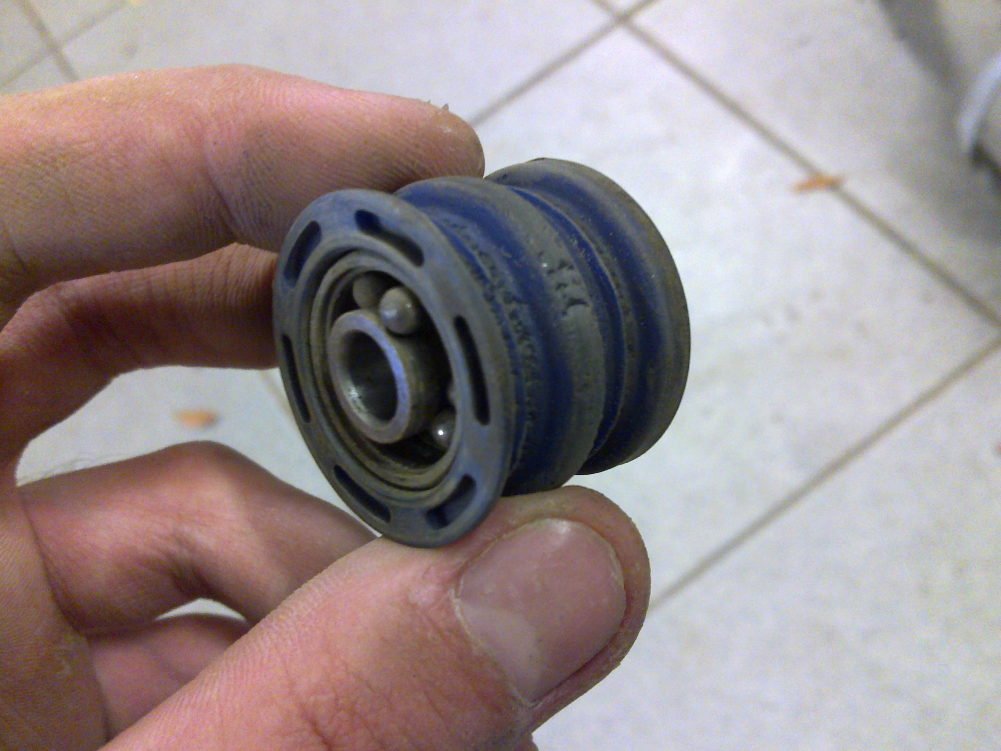 Moje rolna po cca 5000km. Ložisko se už dávno podívalo ven... Teď koupím raději zase origo