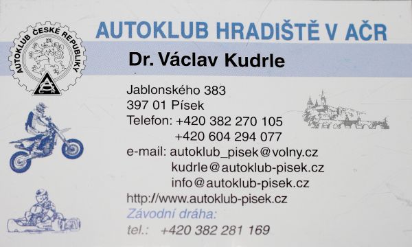 Kdyby si teda nekdo chtel zajezdit na trati v Pisku, tak je to otevrene proverejnost podle kalendare na strankach autoklubu Pisek. Vzdy, kdyz je napsano "Tréninkový den - motokáry,motocykly" jezdi se pul hodiny motorky, pul hodiny motokary. Cena je 200,- za dve pulhodiny jezdeni.