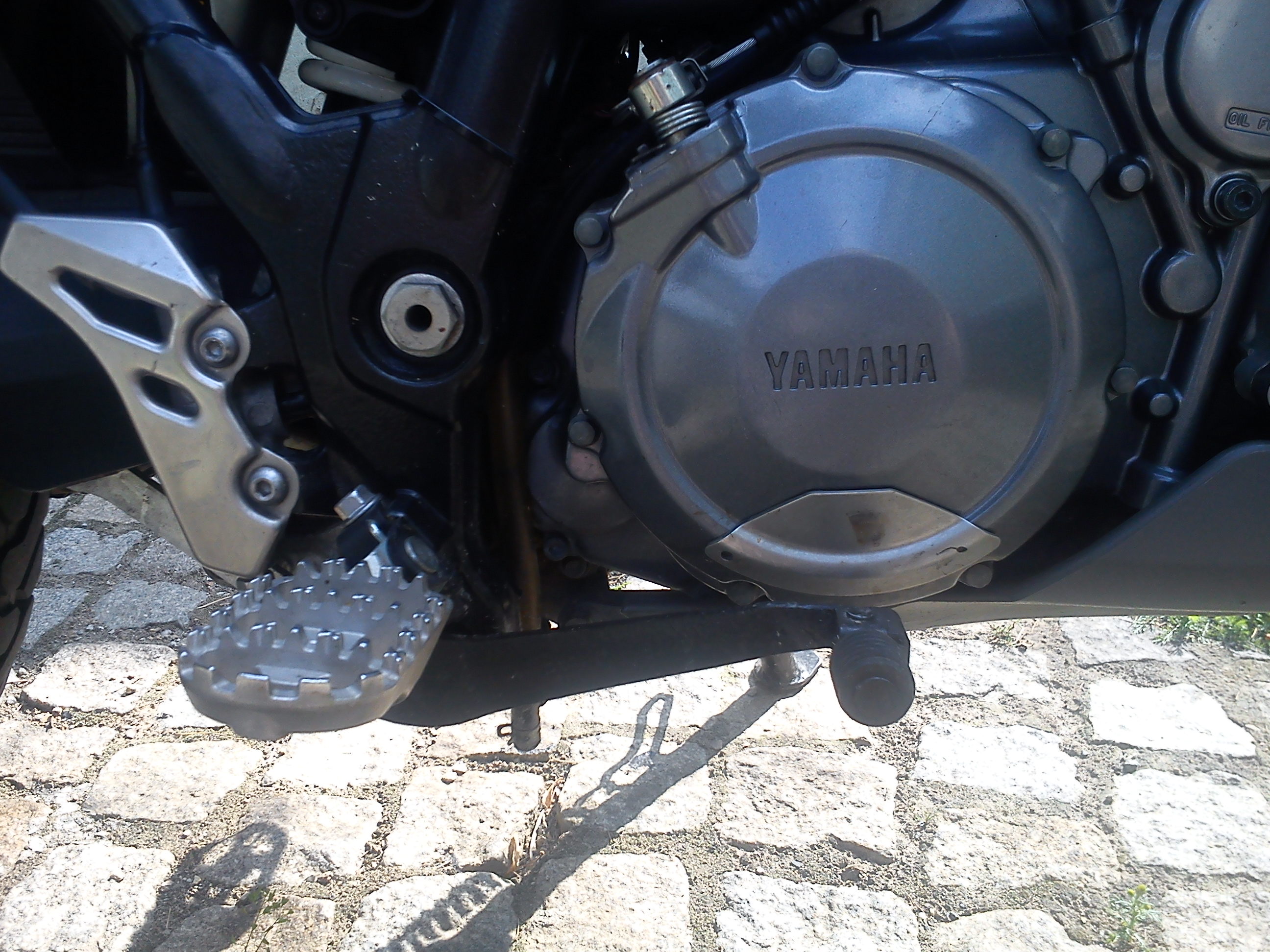 - Pedál brzdy je také zbytečně velký a není sklopný. Při položení mota na pravou stranu pedál brzdy dře o víko spojky, výrobce spodní část víka správně dodatečně zesílil nerezovým výliskem. Pedál jsem pro jistotu nahradil menším a sklopným.