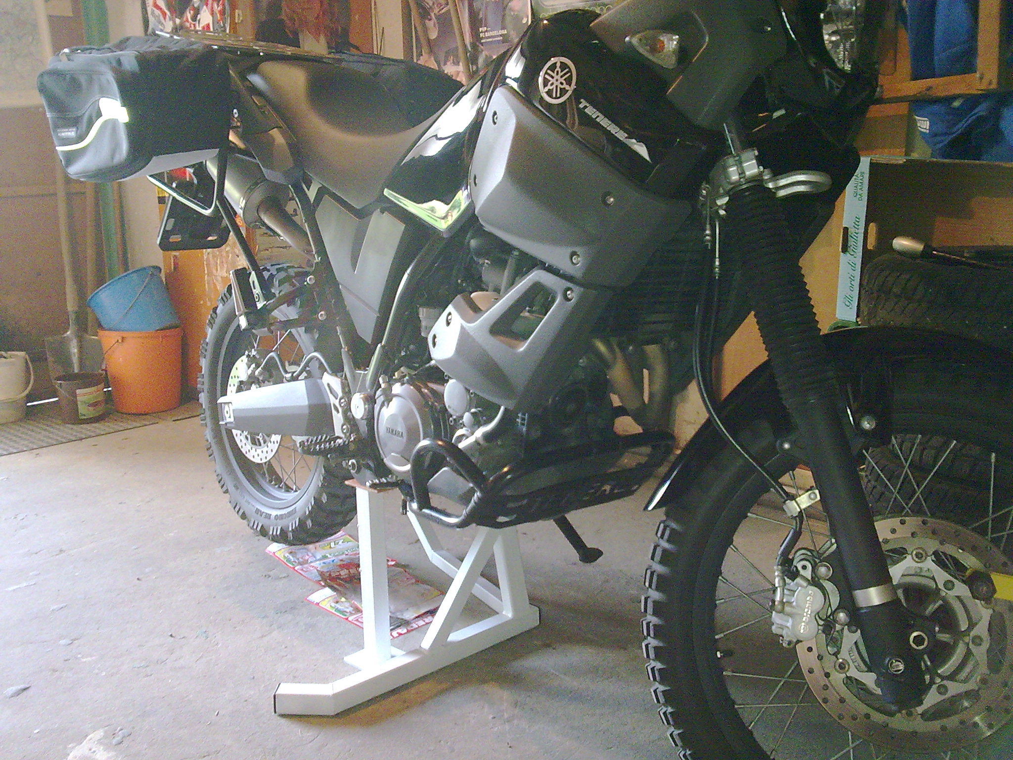 Ja mam nieco taketo na Tenerke. U TRX pouzivam bezny stojan na cestaky pod zadnu kyvku.