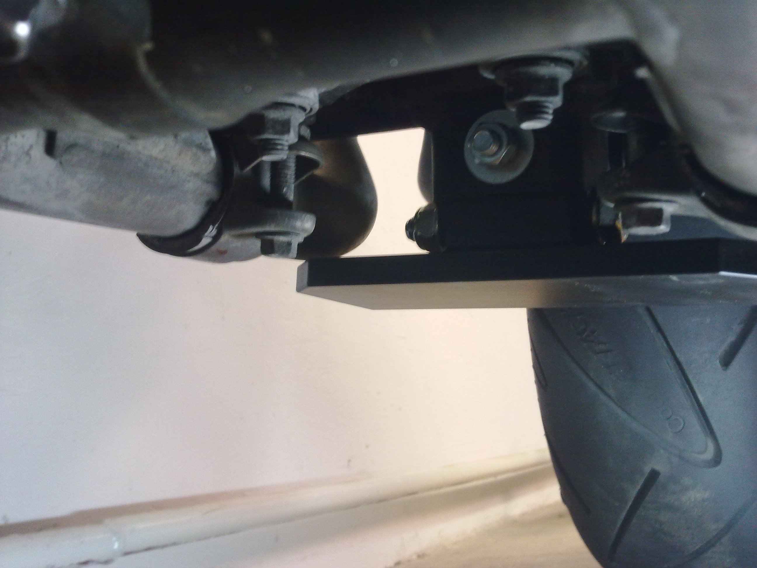 vzhledem k tomu, ze naslapny sotjan se mi zda nejlepsi ale zvedat moto za svody mi prijde prasarna (zdejsi zastanci prominou), vyrobil jsem drobne vylepseni. Je to vic vhodne pro Xkare, bahnakum by se na to asi motal bordel. Snizi to svetlou vysku motorky o 2 - 3 mm, coz neni zadna hruza, ale pri zvednuti moto nelezi na svodech. Vaha kusu je 402g, coz je vicemene zanedbatelne, prihledneme - li k tomu, ze kus se nachazi pod tezistem. Material dural, povrchovka komaxit. Nikomu to nevnucuju jen davam k dobru dalsi alternativu jak pohodlne zvednout moto. Naslapny stojan mam tento: http://eshop.motoservis-travnicek.cz/st ... o-440.html
