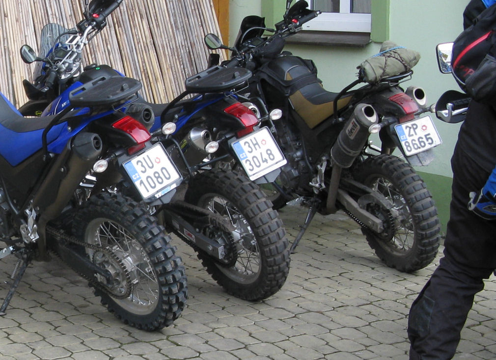 ja davam do zadu E- 09, a do predu Trelleborg T 644 army special...kombinace dostacujici...jinak jakykoliv spunty ve predu oskaces/obrzdis...pokud ne tak nejezdis...ja najedu na zadek E-09 tak 3 tis a je po ni...ale zase tomu davam čočku a porad nekde hrabu atd.....na leto obouvam Heidenau K 60 scout....na podzim az jaro výse uvedene ;)