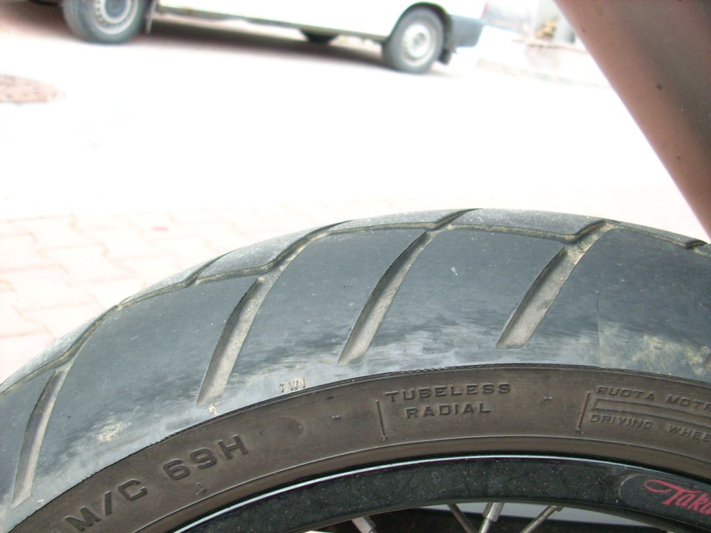 Tak uz jsem na ni najel 10 tisic km a guma je dole. Jeste ji zbejvalo na stredu kousicek do kontrolnich bodu, takze by jeste chvilku vydrzela... pro porovnani puvodni Pirelku jsem musel po peti tisicich sundat.