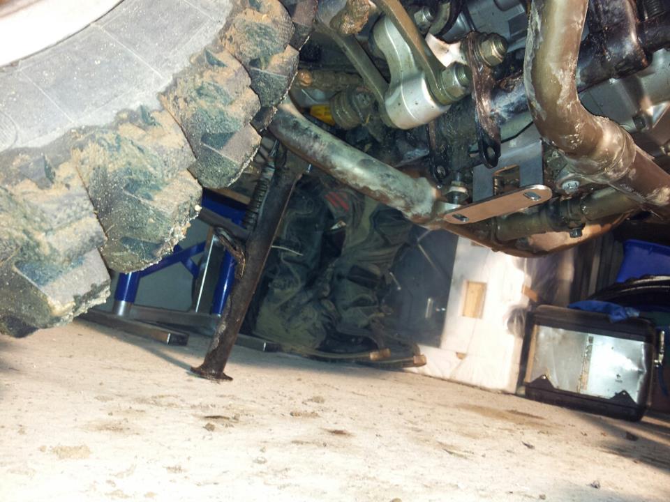 Tak já na tenerce skrátil zadní blatník,blinkry přesunul nad výfuky,namontovány progresivní pružiny předek i zadek.Nový větší šusplech pod motor,otevřené sáni DNA stage 2,silnější pružiny na spojce a to je vše,ještě mě čeká výroba osvětlení SPZ z led