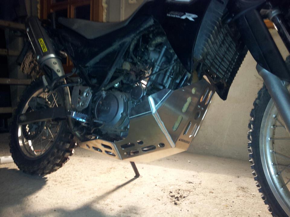 Tak já na tenerce skrátil zadní blatník,blinkry přesunul nad výfuky,namontovány progresivní pružiny předek i zadek.Nový větší šusplech pod motor,otevřené sáni DNA stage 2,silnější pružiny na spojce a to je vše,ještě mě čeká výroba osvětlení SPZ z led