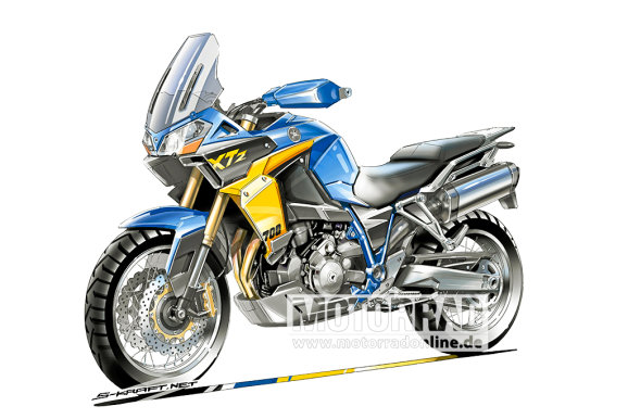 Nejspíš to bude malý Seupertenere pro "chudý". Vzadu 17" a ve předu v lepším případě 19" kolo. Asi nebudu daleko od pravdy, když si myslím, že to bude jako Honda NC700X!?