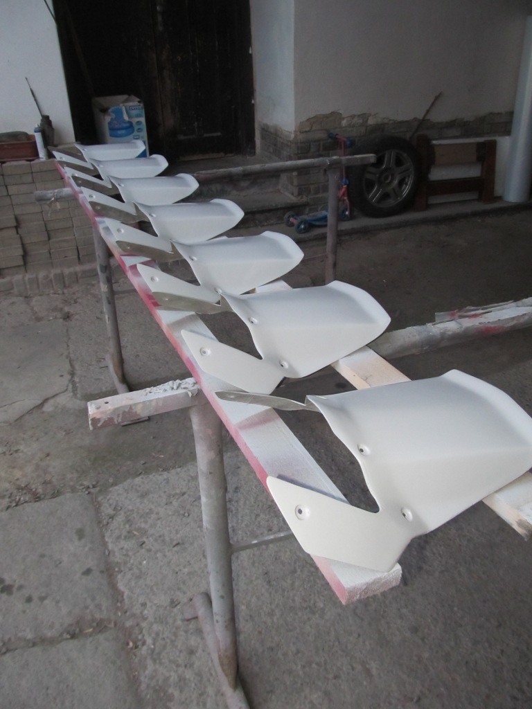 Carlos Checa píše:O víkend jsem všech deset kousků svrtal , aby pasovaly díry, vytmelil největší vady a zarovnal obrys, do víkendu bych měl být v plniči a když se zadaří, tak po víkendu první hotový kousky, bílou perleť už mám doma! Jen ta sériová výroba mě fakt zmáhá