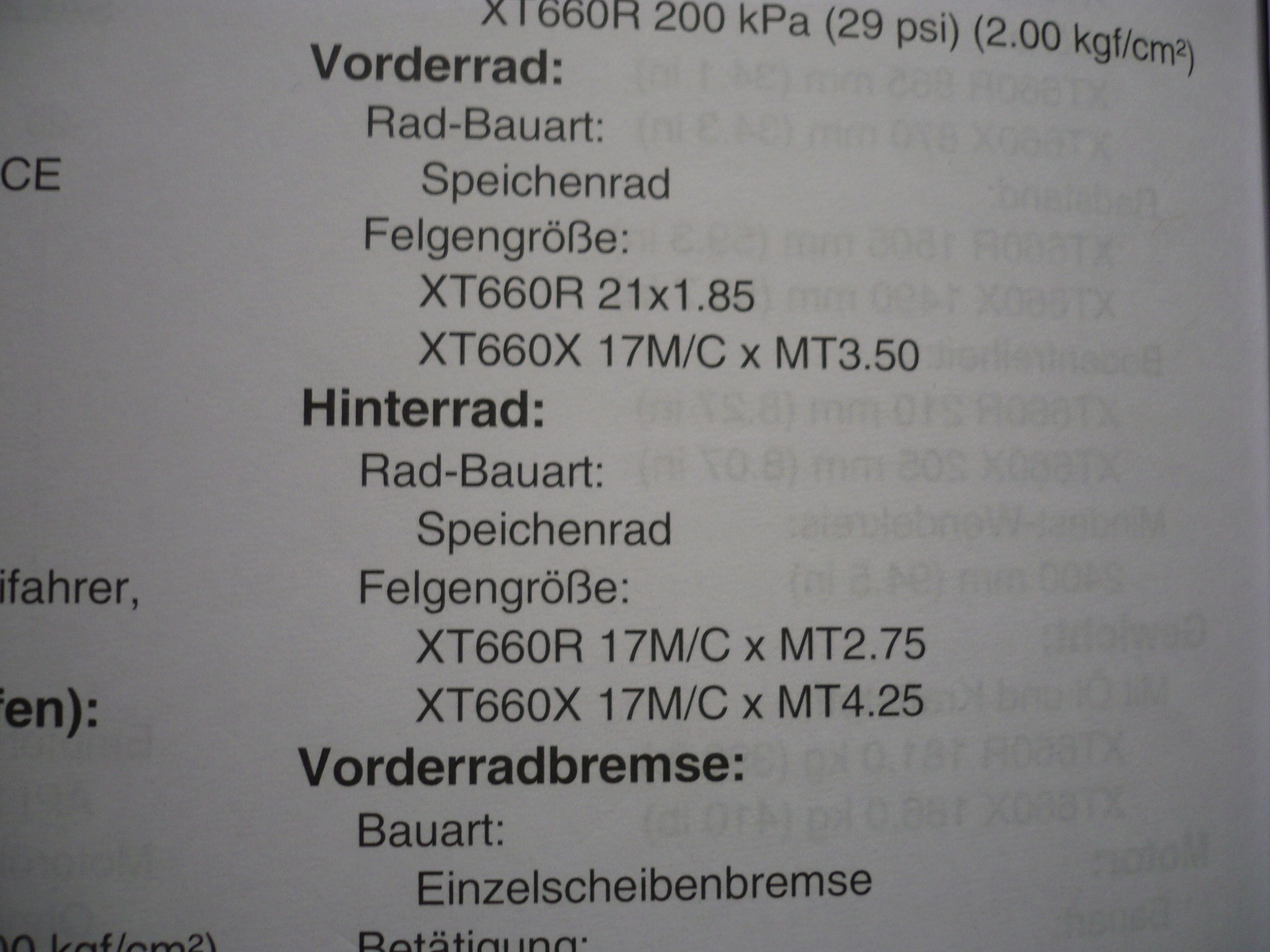 Nemohl by se mi někdo podívat do techničáku na to, jakou tam má XT660R zapsanou šířku zadního ráfku? Jde mi o rozměr MT .. Myslím, že by tam mělo být 2,5 .. ale raději bych to měl od někoho ověřenon ;)