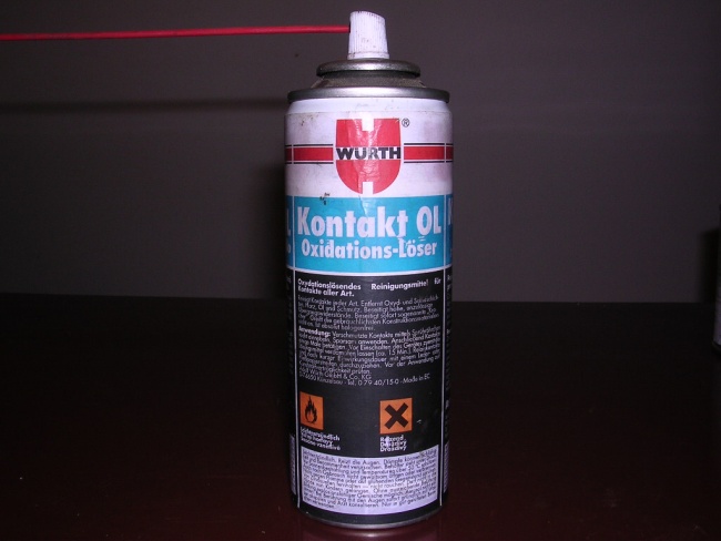 Pokud se již na el. kontaktech vyskytla oxidace, nástříkejte na ně sprej na kontakty, nechte působit (10-15 min.), vyfoukejte stlačeným vzduchem, nebo jinak vyčistěte a následně aplikujte tuk na kontakty (předchozí)
