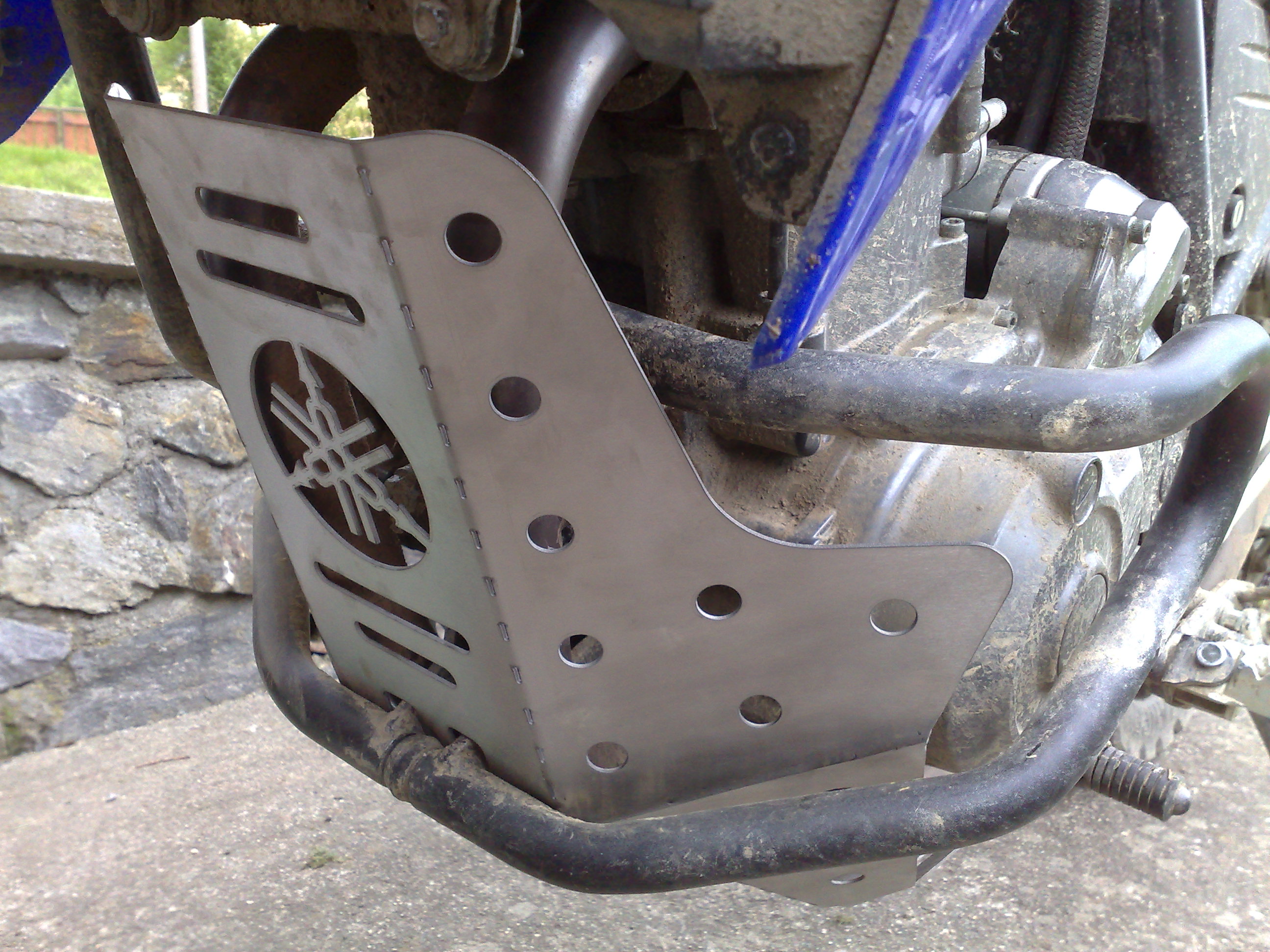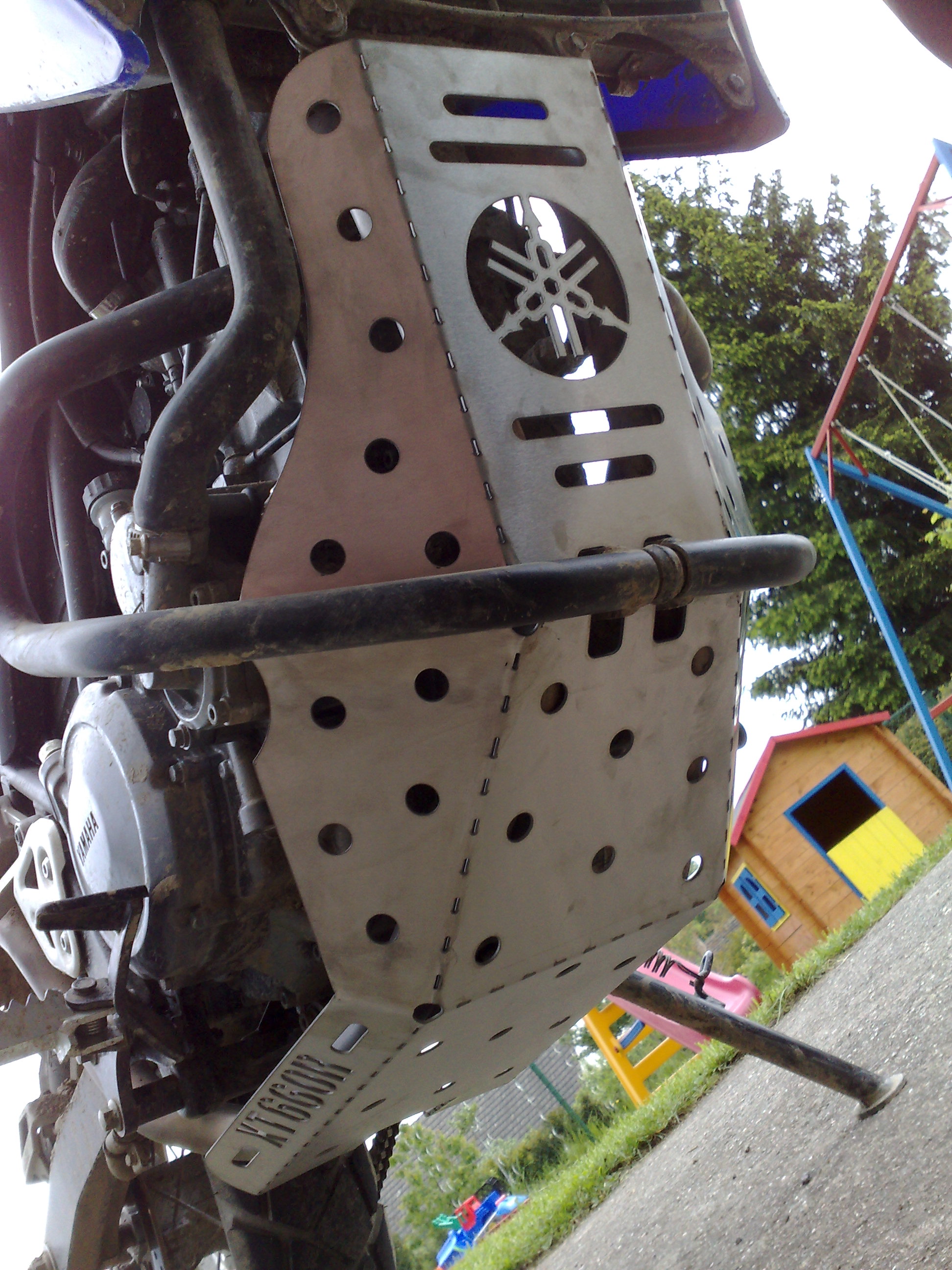Přidávám fotky krytu motoru namontovaný na moto. Materiál nerez tl.1,5mm.
