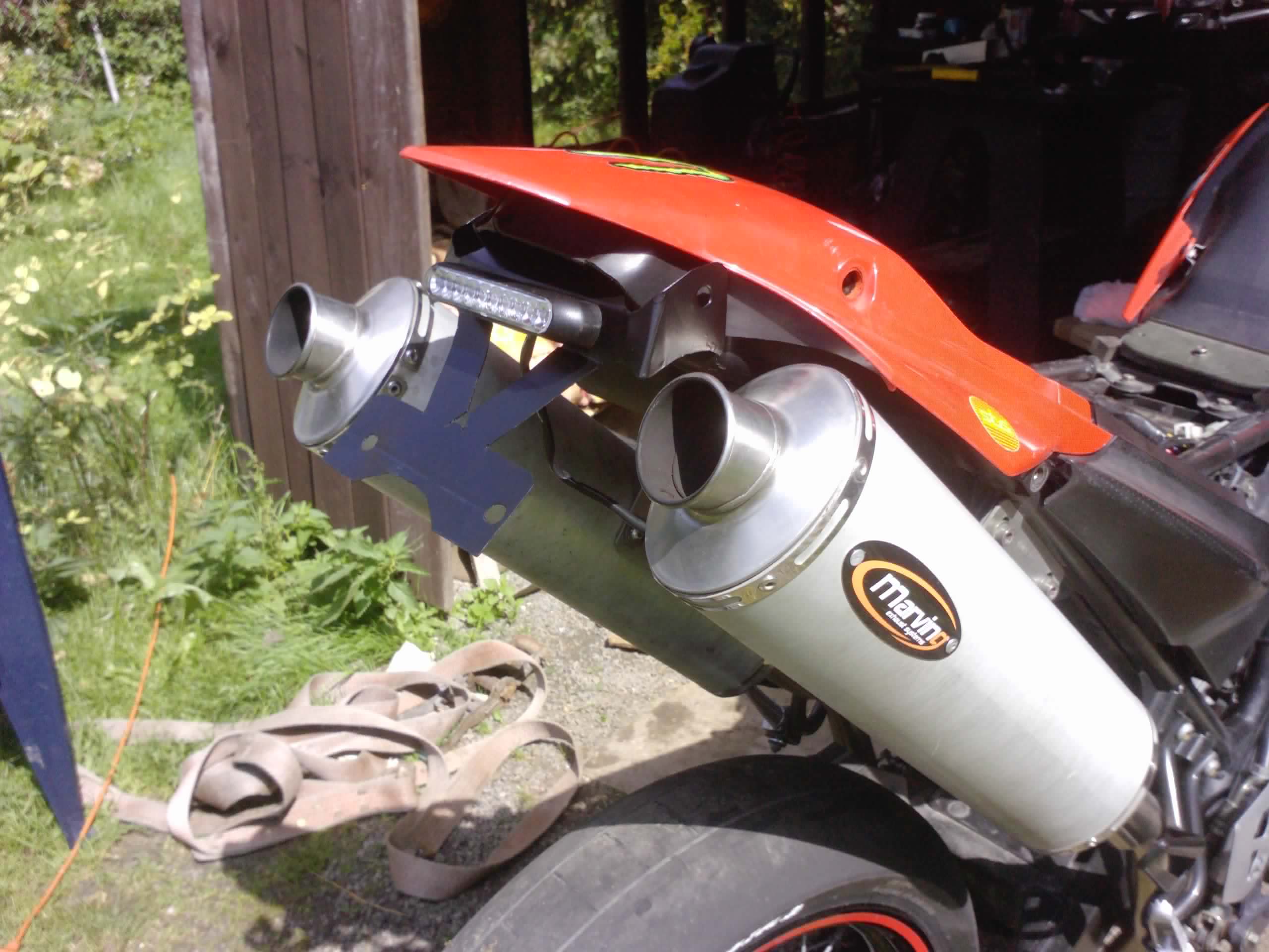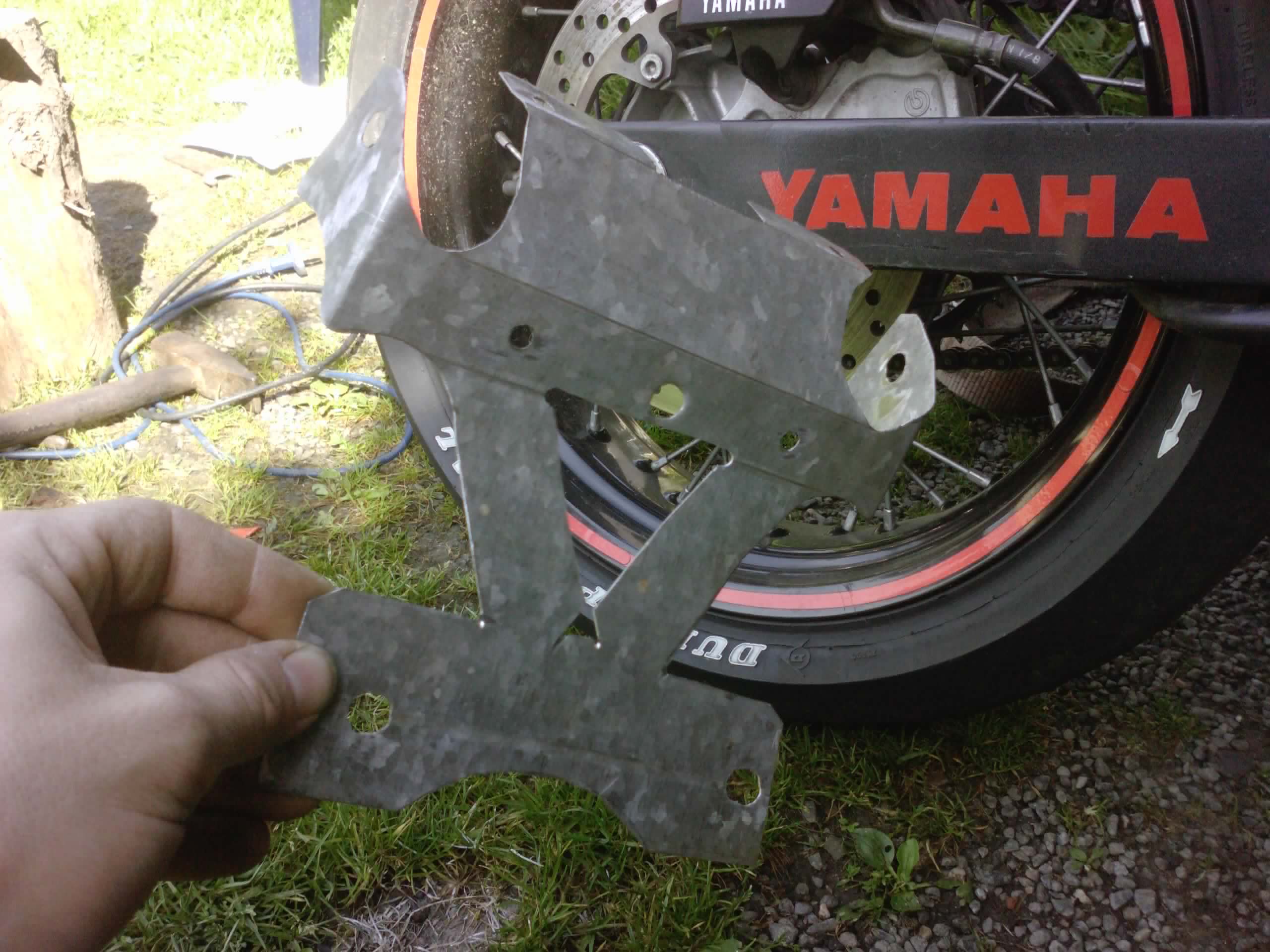 řezal jsem jen ten kus, co je na fotce.. jak je flexou odpálené to zadní světlo.. chtěl jsem si zachovat úložný prostor.. jinak držák se bude podle totoho pálit z 1,5 plechu.. tak kdyby jste chtěli, můžu to nechat rovnou vícekrát.. pak stačí jen ohnout.. nebo to můžu i naohýbat.. pak zbývá jen koupit světlo a šup to tam..