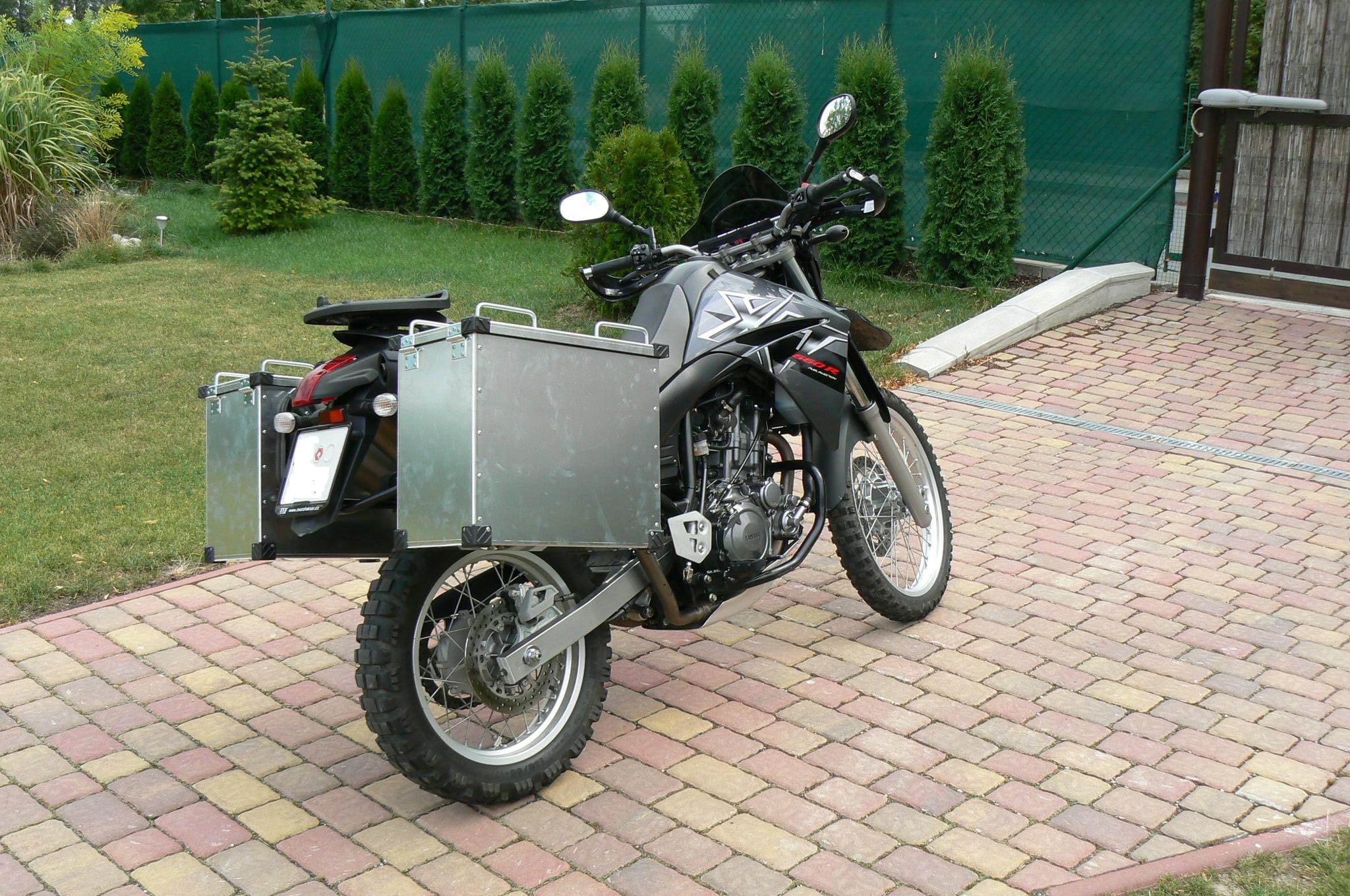 Pokud by někdo chtěl kufry na xt doporučoval bych od f. Zarges- jsou levné a širší a nižší- vypadaj líp na motu a je do nich lepší přístup.