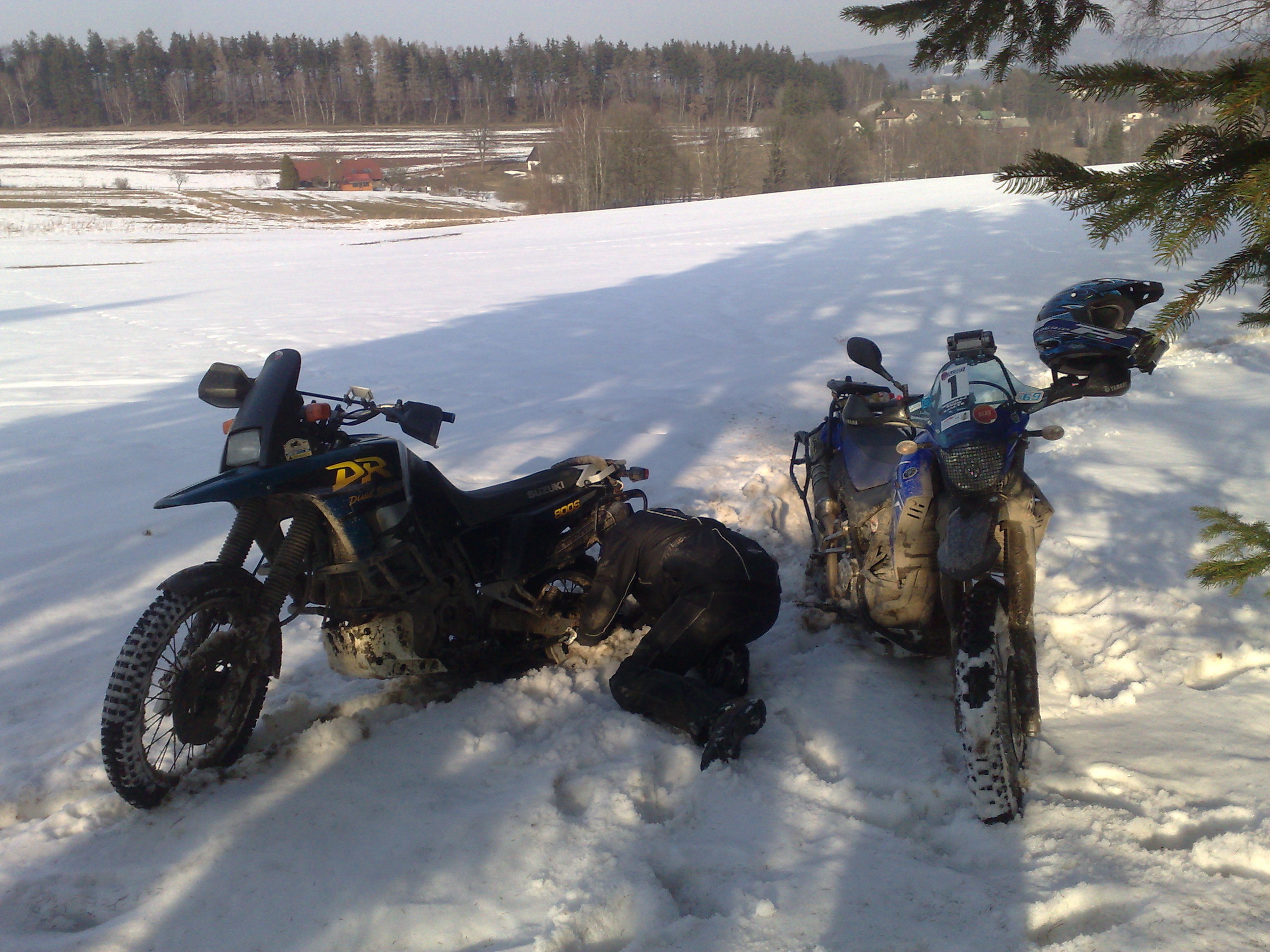 Tak když je těch 10-15cm tak to je v pohodě,to drapák prohrne ale někde bylo i 0,5m a to se nedá.Naštěstí jsme byli dva a tak si pomůžeme motorky vytáhnout.Dávali jsme i nějaké výjezdy pod sněhem a docela to šlo.Dřina to ale je.packi píše:tak supera co dela ten pan u toho kola? on tam usnul?