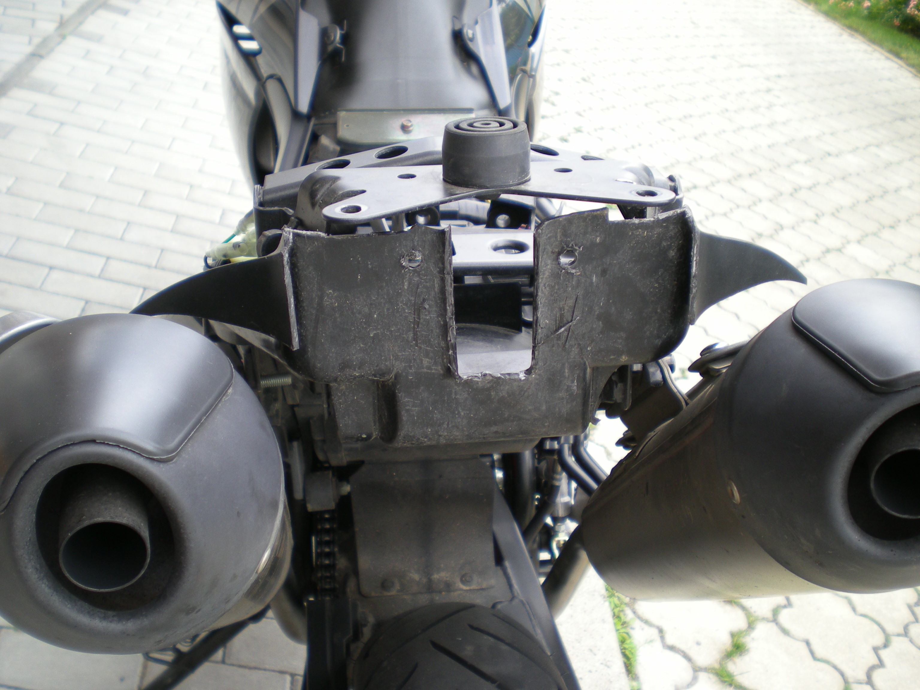 Ostřihal jsem vlastně jen 2 plasty, jeden, co drží zadní světlo a rozpůlil jsem držák SPZ. Je třeba upravit a prostříhat plastovou partii pod sedlem (blatník nebo kryt motoru) Žádná další rasovina netřeba. Podotýkám, že jsem u toho nebrečel, protože předchozí majitel ten díl stejně lepil, takže bych si to v nejhorším zdůvodnil. Potřebujete nůžky na plech nebo na plasty, rašpli, vrtačku a...........to je vše. Odstrojíte zadek, všechny 3 plasty (včetně blatníčku) a začínáte zkracovat držák světla odstřižením od krytu motoru . Nic jsem nelepil a prostor pod sedlem se nemění. Takže, fotky dle postupu, ovšem v opačném pořadí. Jinak všechny fotky jsou na: http://uloz.to/632618/rear lightXTX.zip
