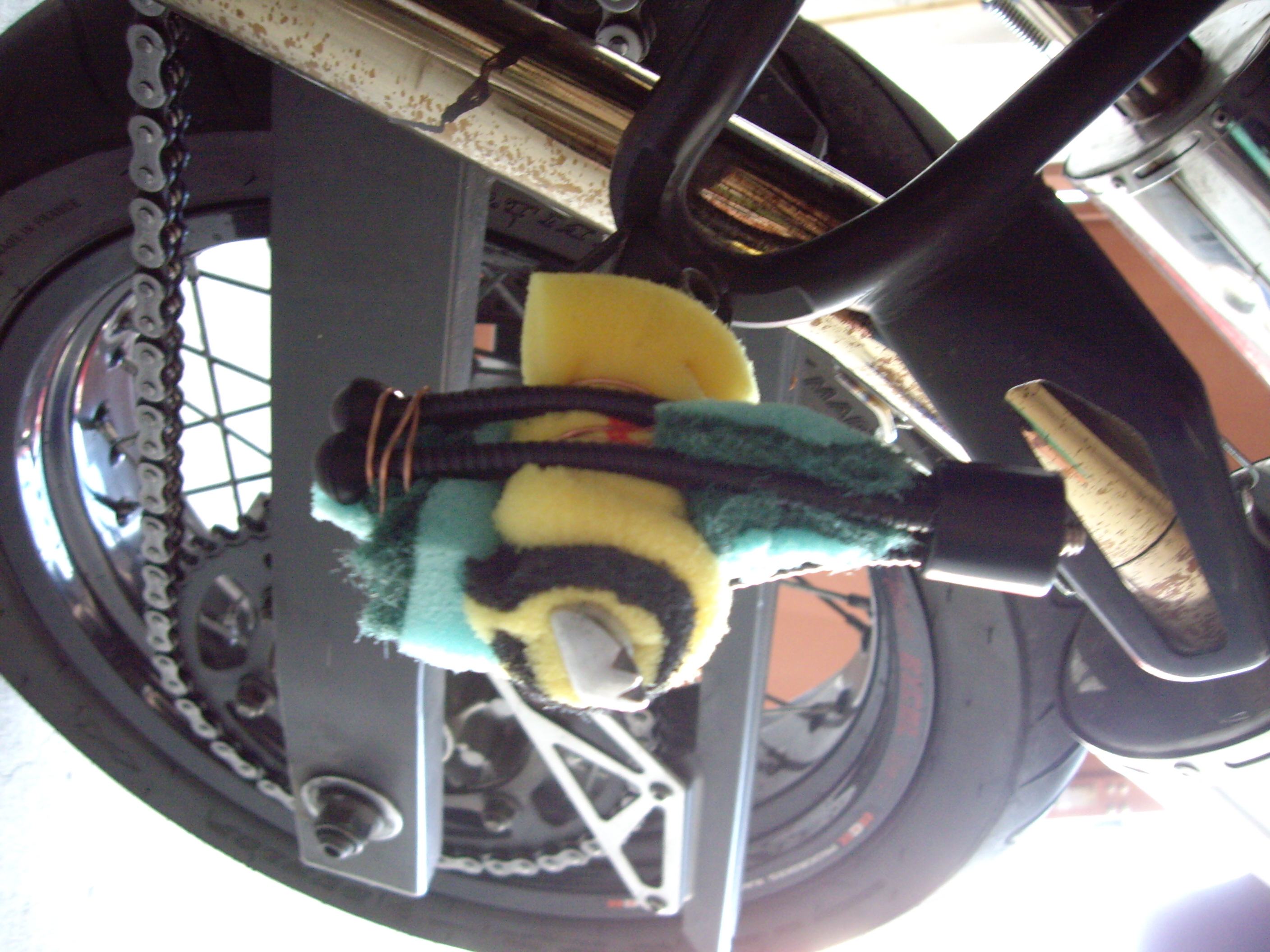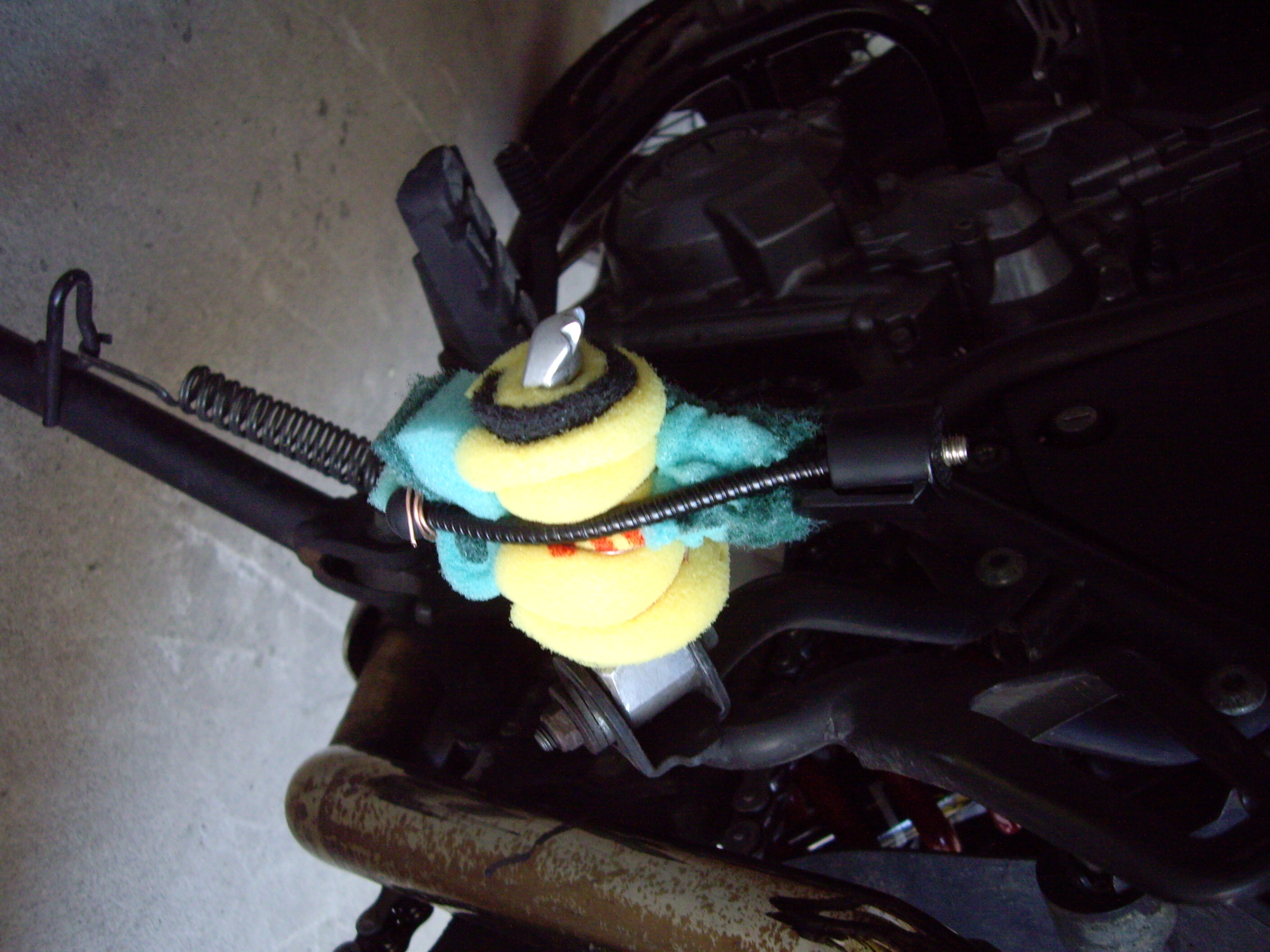 vše uchyceno pouze vázacím drátem, stříbrnou lepenkou a jako molitan mi postačily houbičky na nádobí, ěště jsem to nezkusil, ale natočil jsem si video připevněný pouze na mini stativ s ohýbacíma nožičkama a lepenkou a trošku se to klepalo, stativy mám přidělaný dva, jeden na levým zrcátku a druhý na zadní levý stupačce proti směru jízdy a na zrcátku po směru