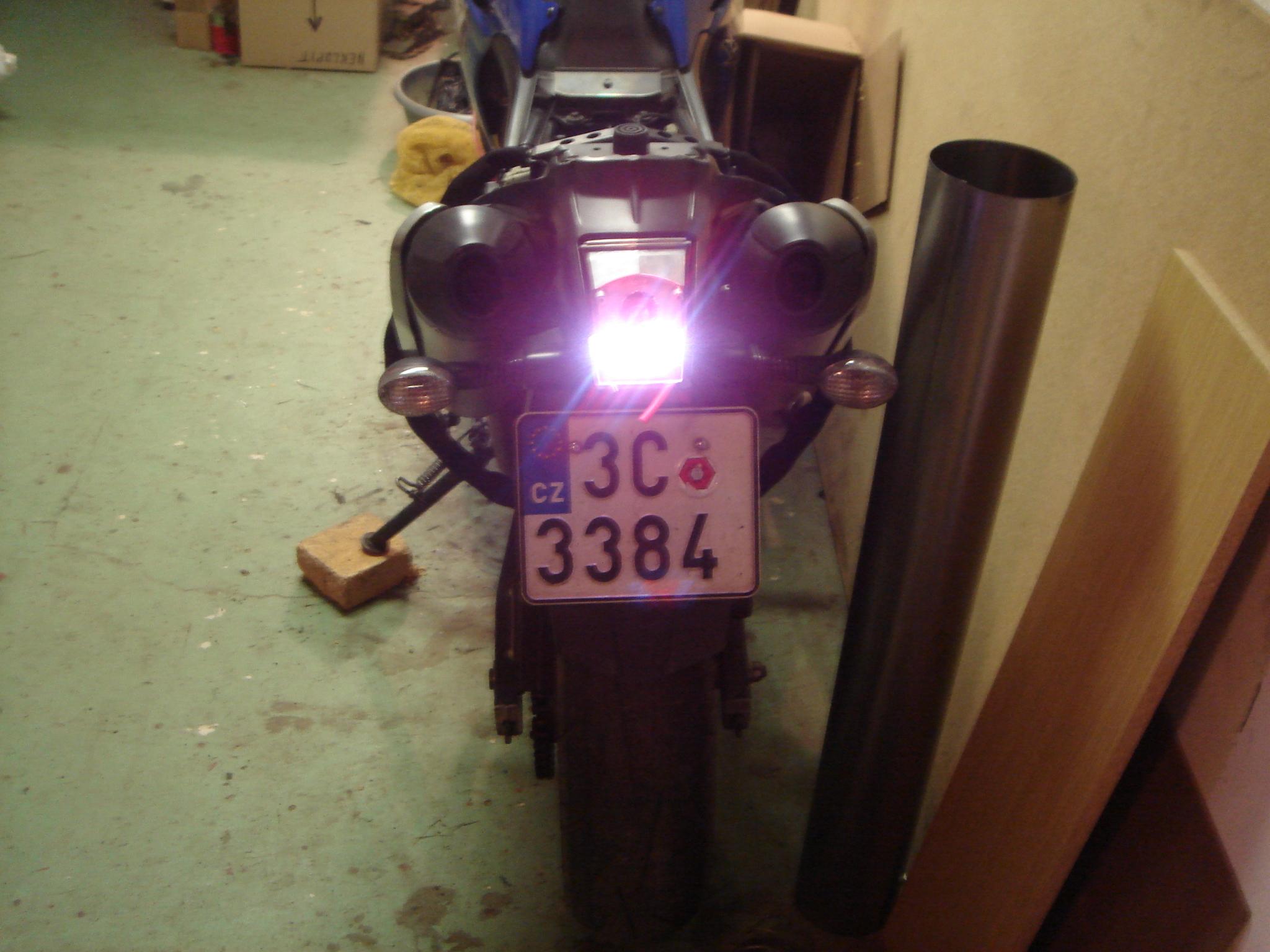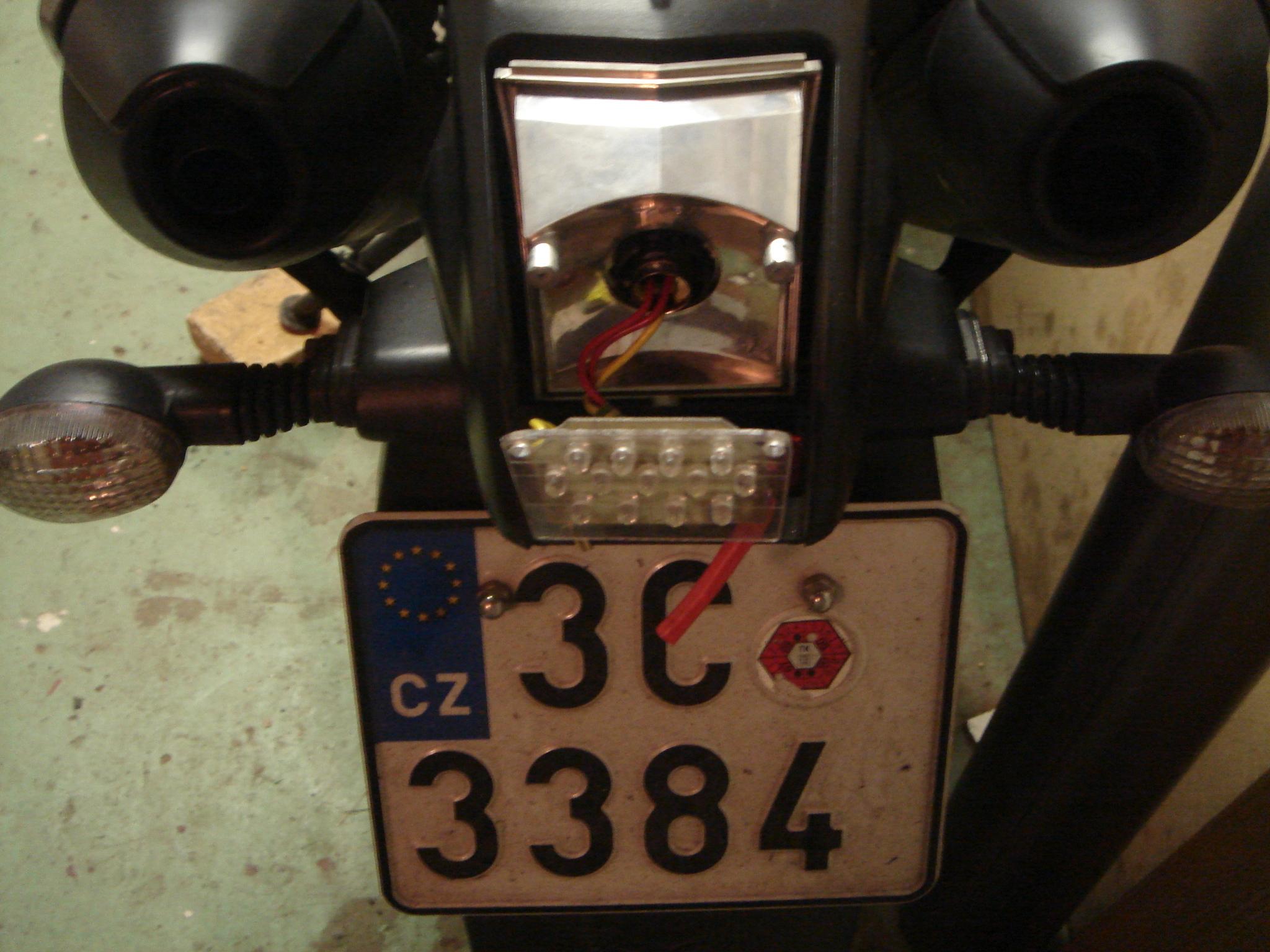 tak sem to toršku pokutil, nakonec 4 LED jako konocové světlo +2 na sovětlení spz a 9 LED na brzdovku. viz. foto.. nic krásného ale je to skovaný pod krytem světla tak co