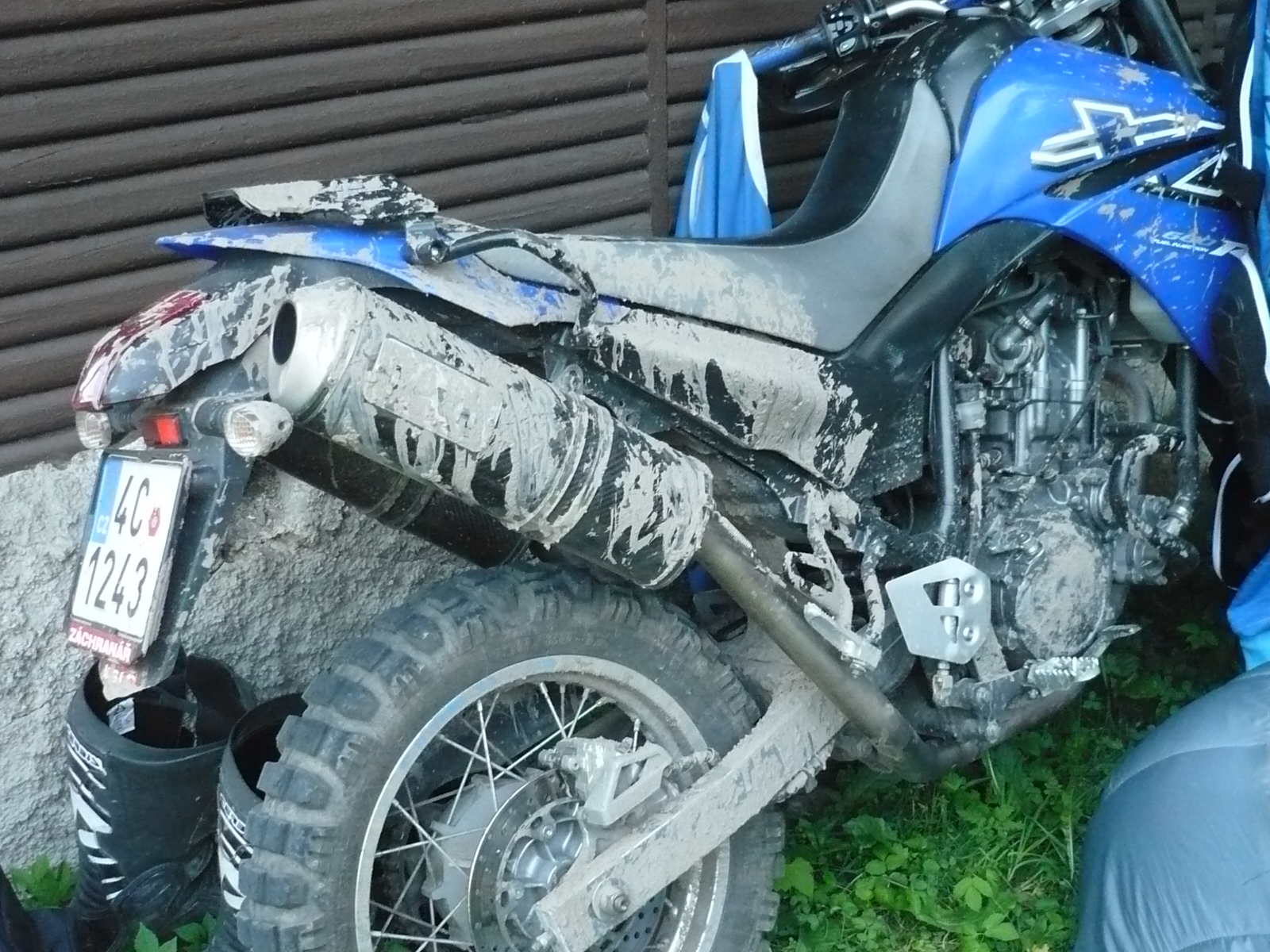 . Full gas a bahno lítalo několik metrů daleko. O sandasovi za mnou jsem nevěděl a dostal pořádnou bahenní koupel. V terénu byl prvně, tak se alespoň něčemu novému přiučil --- "stojí-li jezdec v bahenní louži před vámi, rychle opusťte svou současnou pozici"