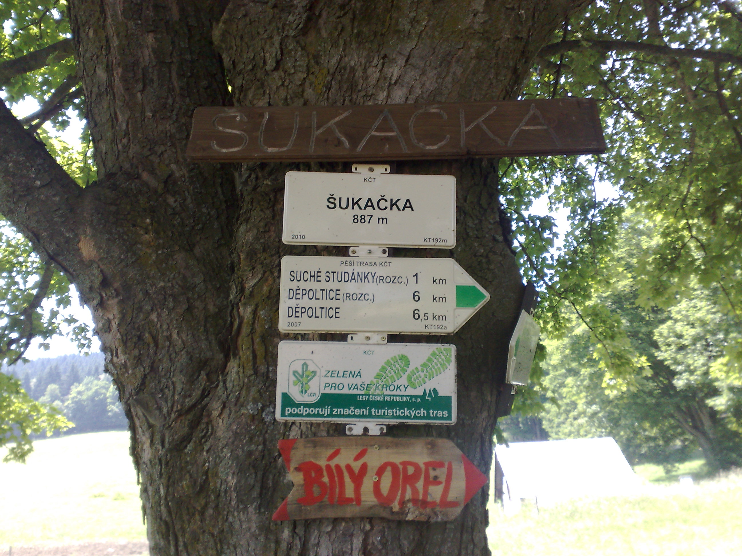 Nejprve jsem zajel pro nově vytisklé srazové samolepky a pak, cestou kolem Prahy, jsem jel směr Sušice. Že jedu kolem Prahy jsem si myslel podle mapy, z omylu mě ale vyvedla cedule „Hlavní město Praha“ a kolony jak prase. Teploty se střídali v rozmezí 31-34°C a v kolonách se mi občas rozsvítila kontrolka teploty oleje a ventilátor makal co to šlo.